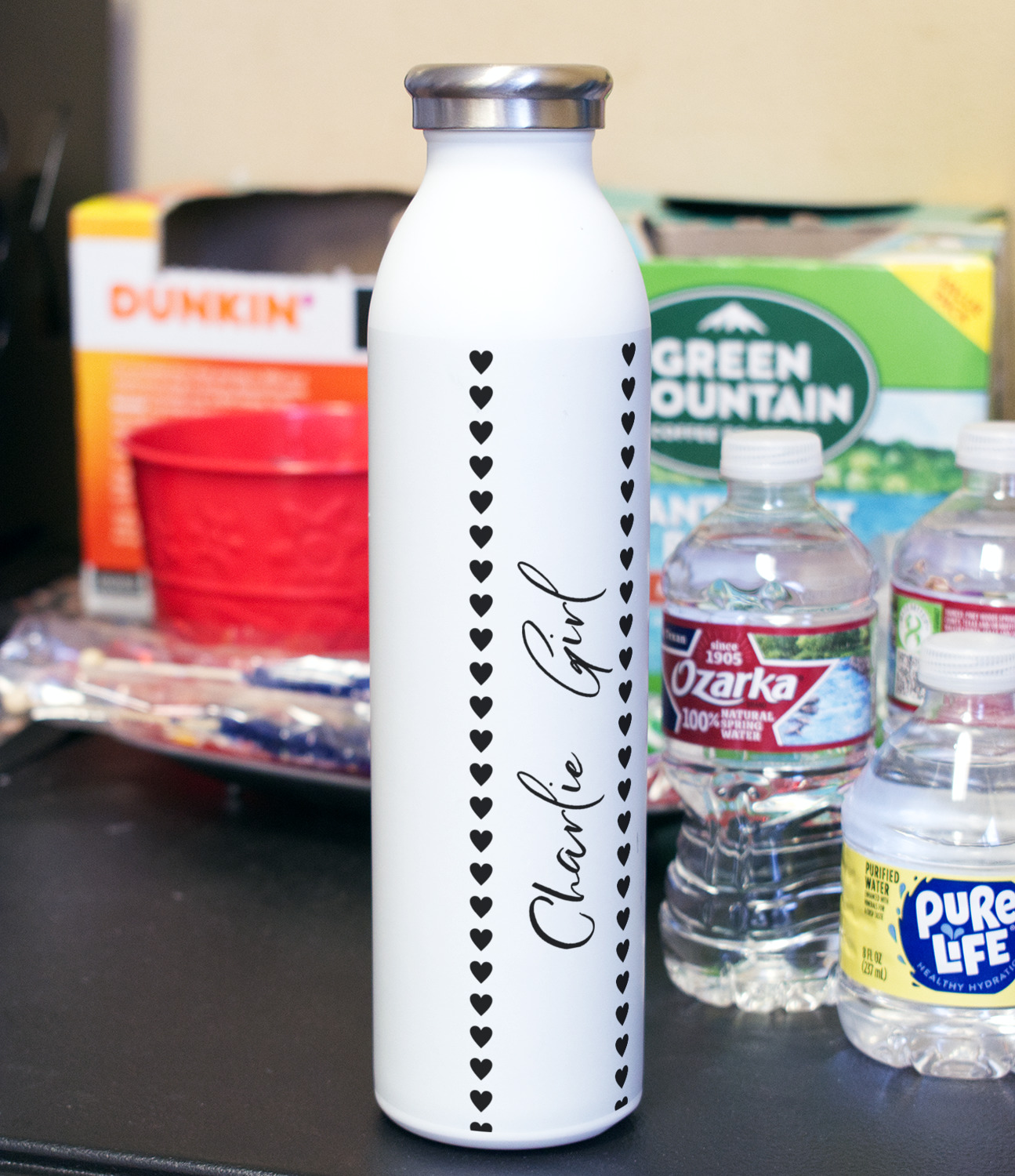 With the double wall insulated construction this bottle will keep drinks cold for 24 hours and hot for 12 hours. The large size allows for a beautiful large artwork space to allow you to make this bottle all your own.