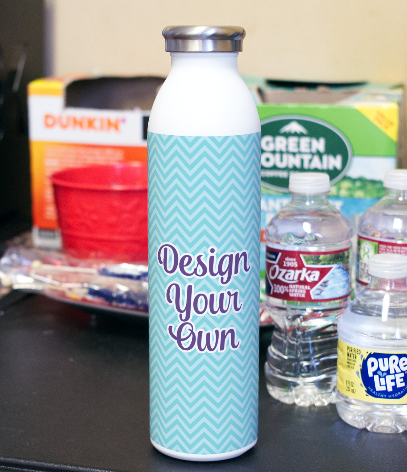 Design your bottle and we will print your design with a UV stable ink so it will not fade over time. After printing the design we apply a clear coat over the print to ensure its durability will stand up to rough every day use.