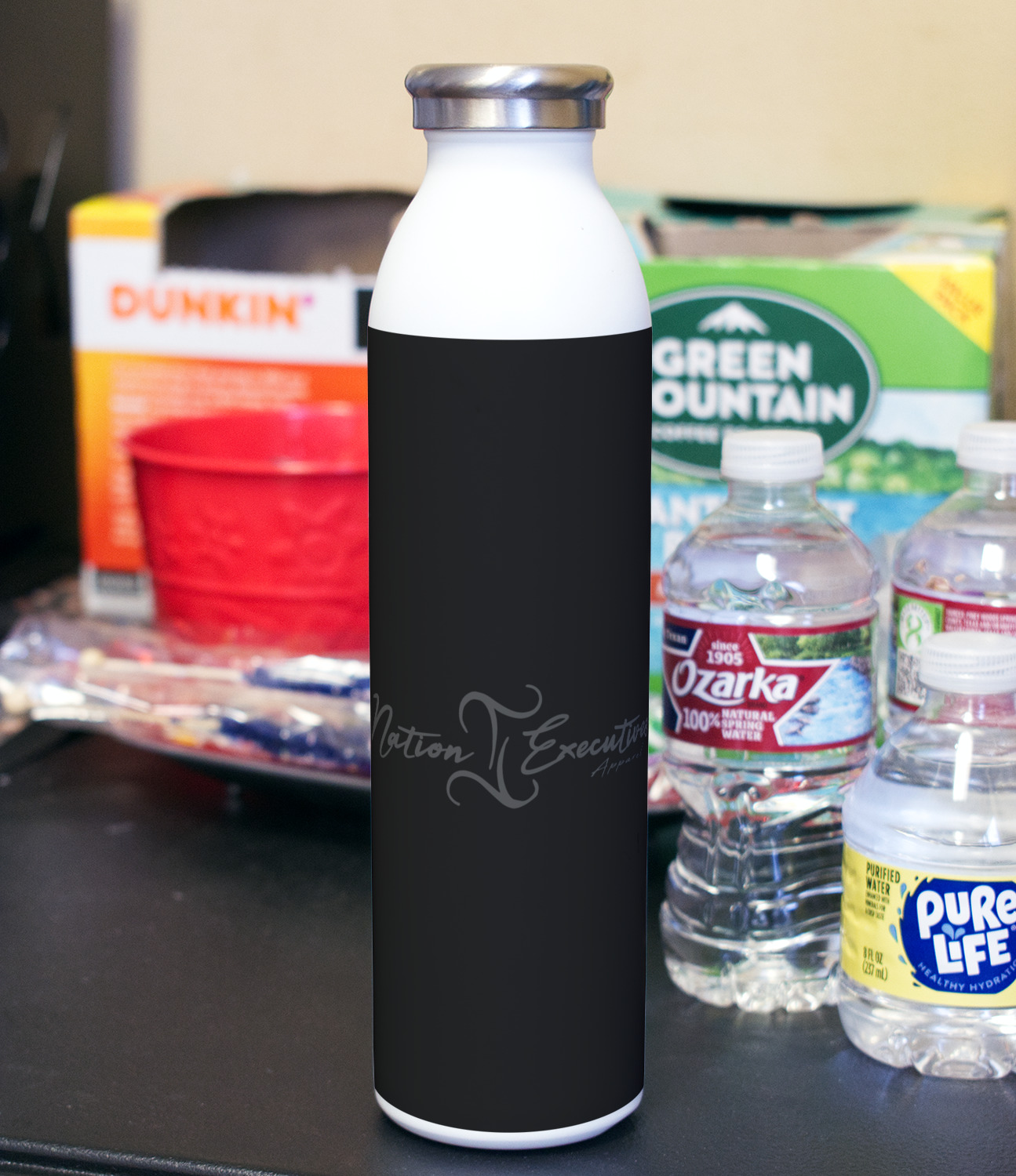 Design your bottle and we will print your design with a UV stable ink so it will not fade over time. After printing the design we apply a clear coat over the print to ensure its durability will stand up to rough every day use.