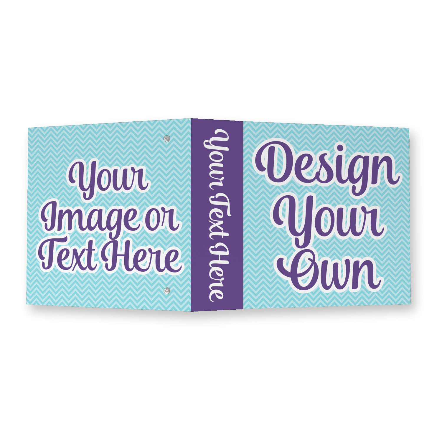 Made from a sturdy cardboard base with a full high quality canvas textured vinyl wrap with the design of your choice. Unlike our standard 3-ring binder with the full wrap design your artwork wraps from the front and back and into the inside of the binder.