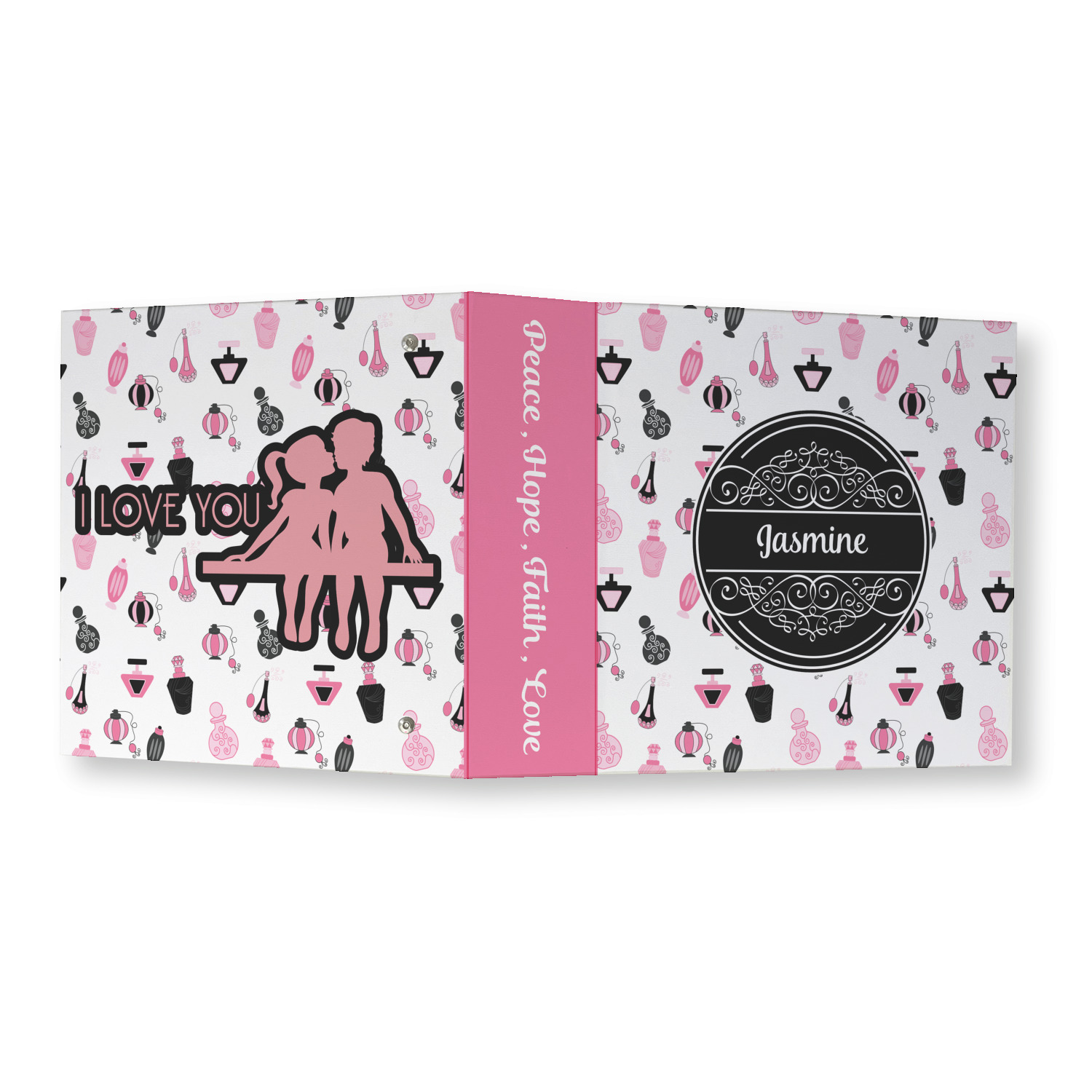 Made from a sturdy cardboard base with a full high quality canvas textured vinyl wrap with the design of your choice. Unlike our standard 3-ring binder with the full wrap design your artwork wraps from the front and back and into the inside of the binder.