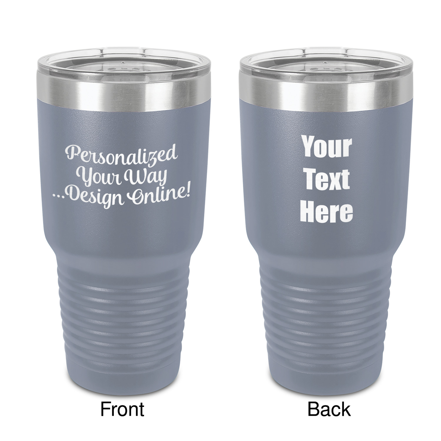 With our personalized 30 oz double wall stainless steel tumblers, you'll never have to settle for a plain, boring tumbler again! These tumblers will be a wonderful addition to your drinkware collection and will make those long commutes much brighter. Personalize one for yourself, or give these personalized tumblers as a gift to relatives, friends, or coworkers!