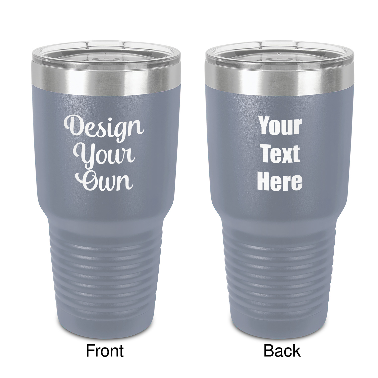 With our personalized 30 oz double wall stainless steel tumblers, you'll never have to settle for a plain, boring tumbler again! These tumblers will be a wonderful addition to your drinkware collection and will make those long commutes much brighter. Personalize one for yourself, or give these personalized tumblers as a gift to relatives, friends, or coworkers!