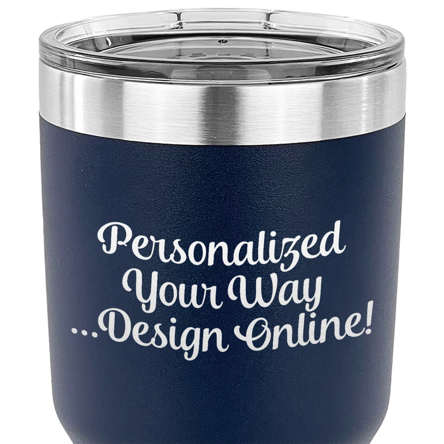 With our personalized 30 oz double wall stainless steel tumblers, you'll never have to settle for a plain, boring tumbler again! These tumblers will be a wonderful addition to your drinkware collection and will make those long commutes much brighter. Personalize one for yourself, or give these personalized tumblers as a gift to relatives, friends, or coworkers!