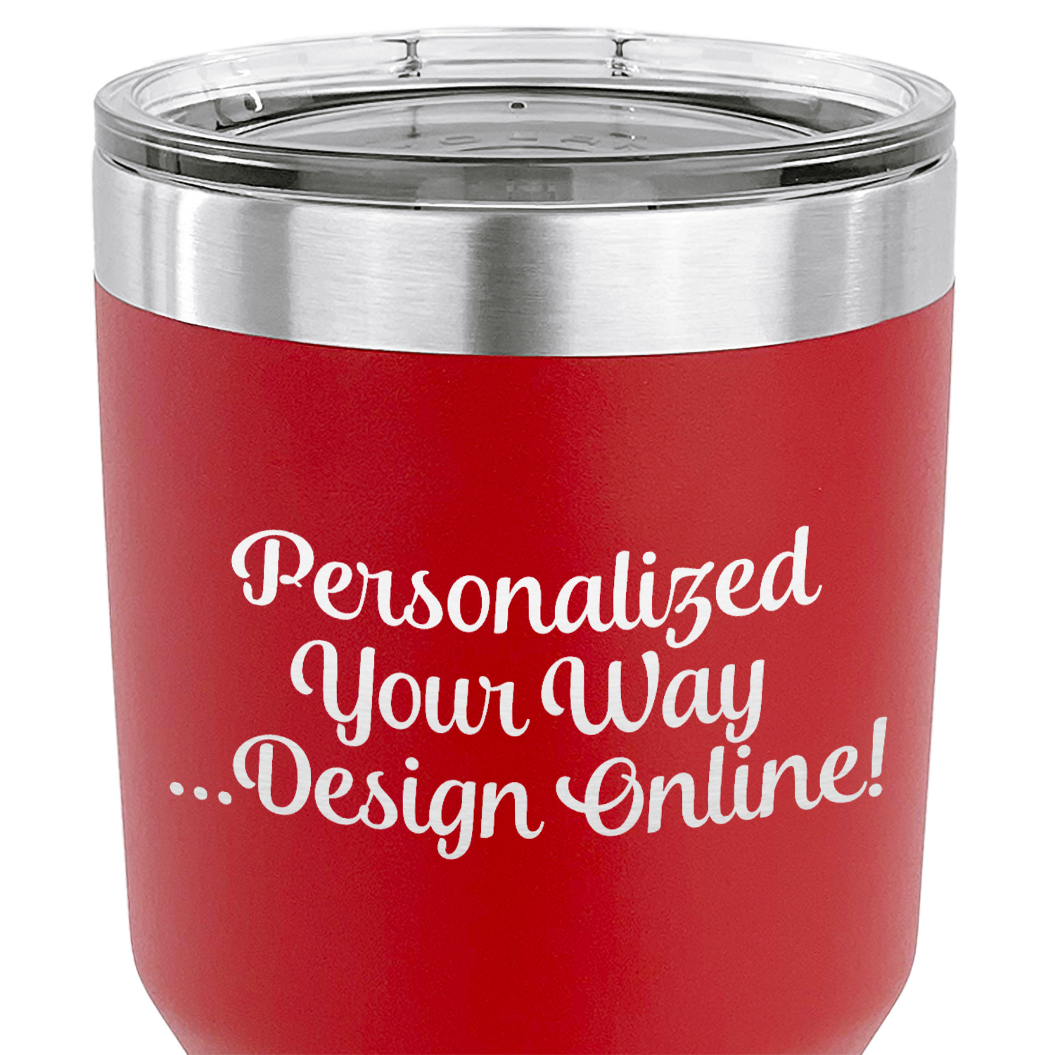 With our personalized 30 oz double wall stainless steel tumblers, you'll never have to settle for a plain, boring tumbler again! These tumblers will be a wonderful addition to your drinkware collection and will make those long commutes much brighter. Personalize one for yourself, or give these personalized tumblers as a gift to relatives, friends, or coworkers!