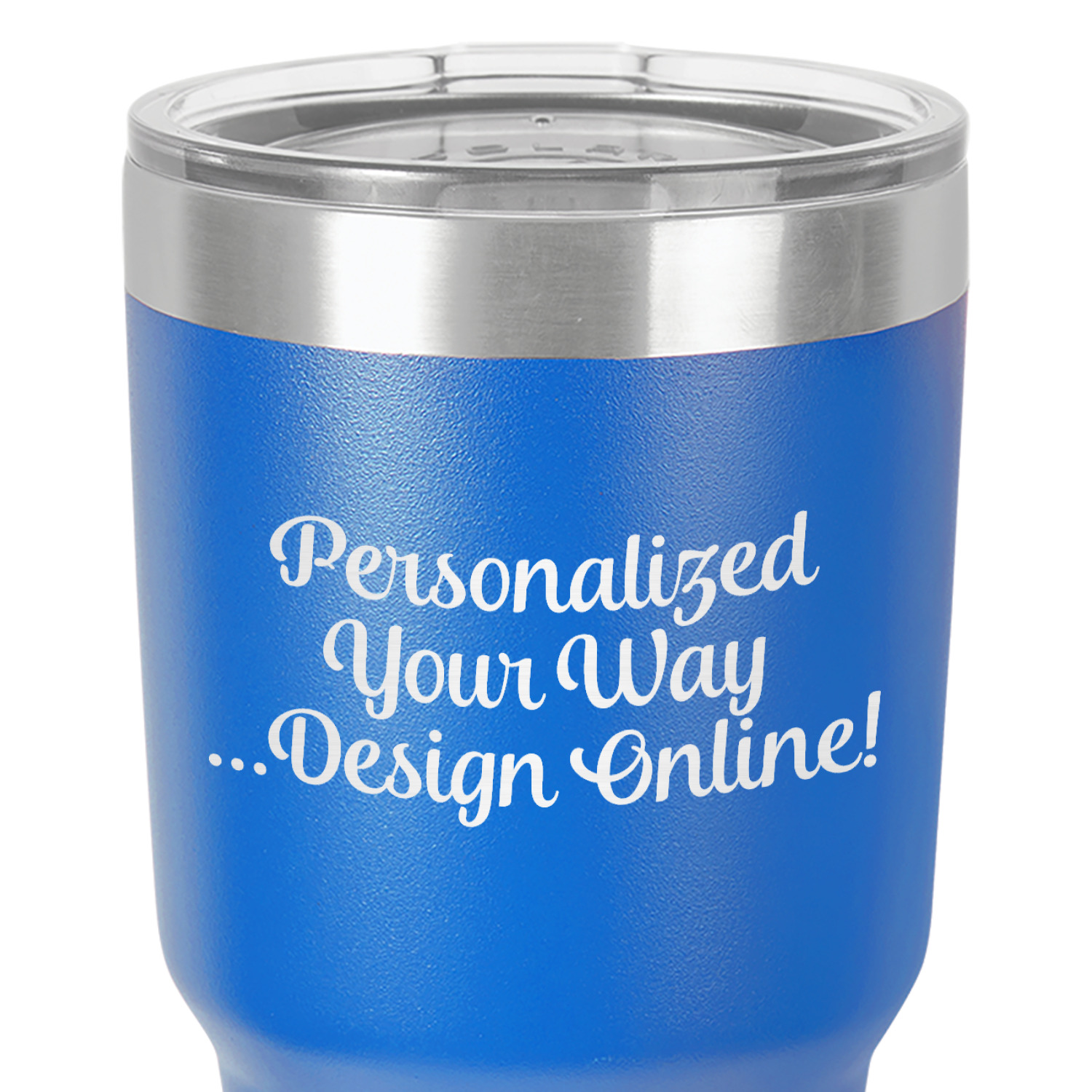 With our personalized 30 oz double wall stainless steel tumblers, you'll never have to settle for a plain, boring tumbler again! These tumblers will be a wonderful addition to your drinkware collection and will make those long commutes much brighter. Personalize one for yourself, or give these personalized tumblers as a gift to relatives, friends, or coworkers!