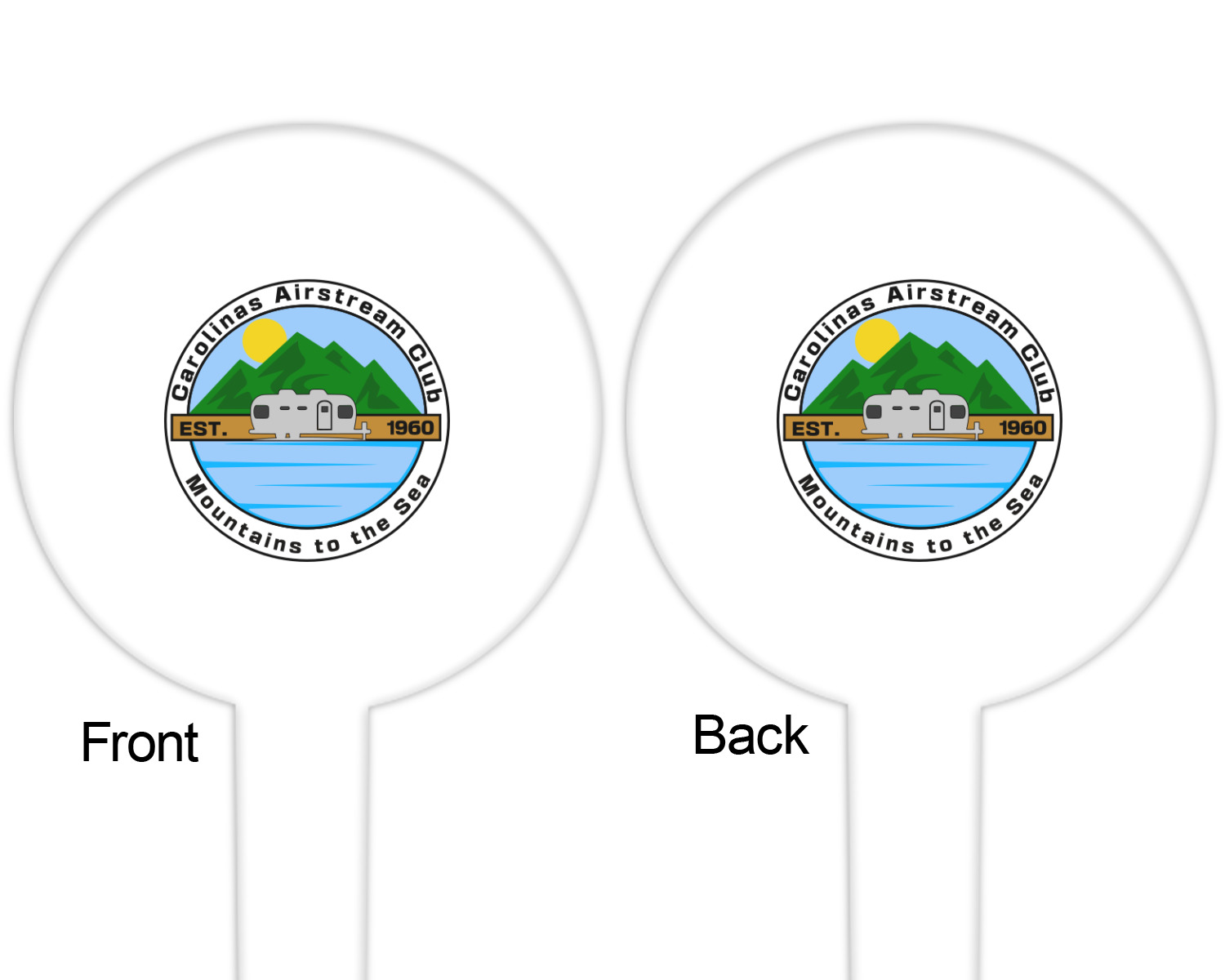 Carolina Airstream Club Design on Custom 6" Round Plastic Food Picks - White - Double-Sided