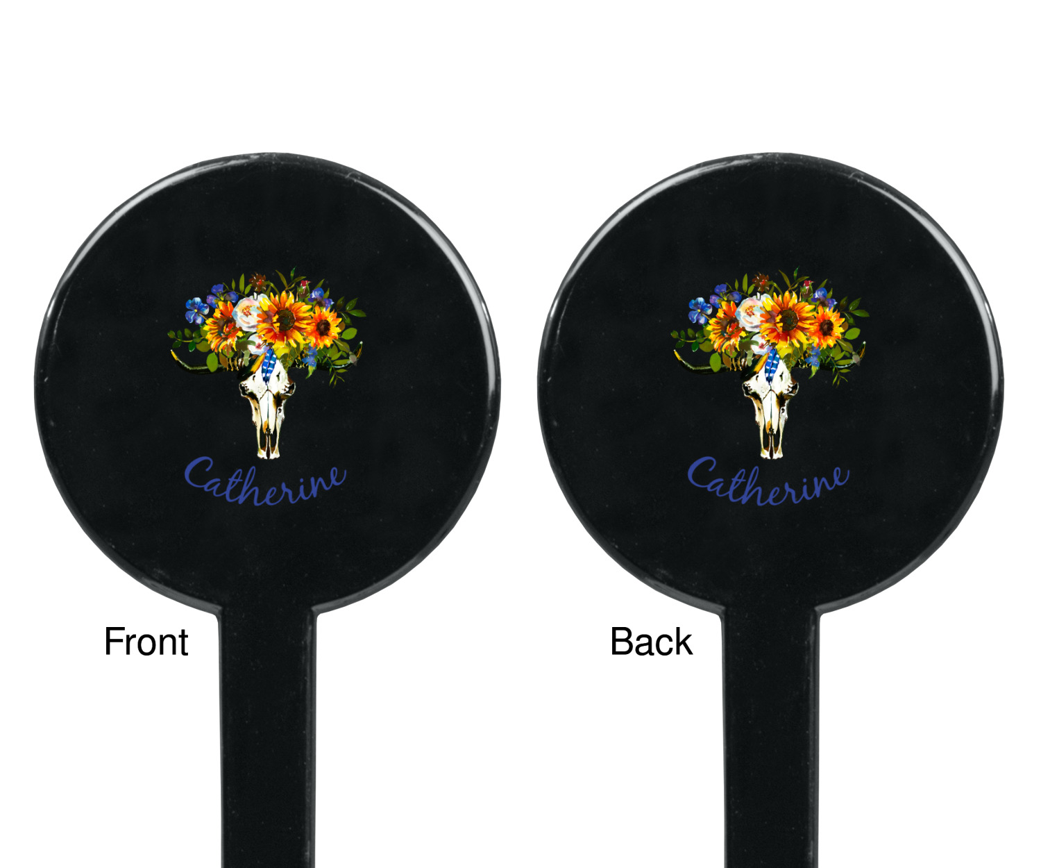 Customer Design on Custom 7" Round Plastic Stir Sticks - Black - Double-Sided