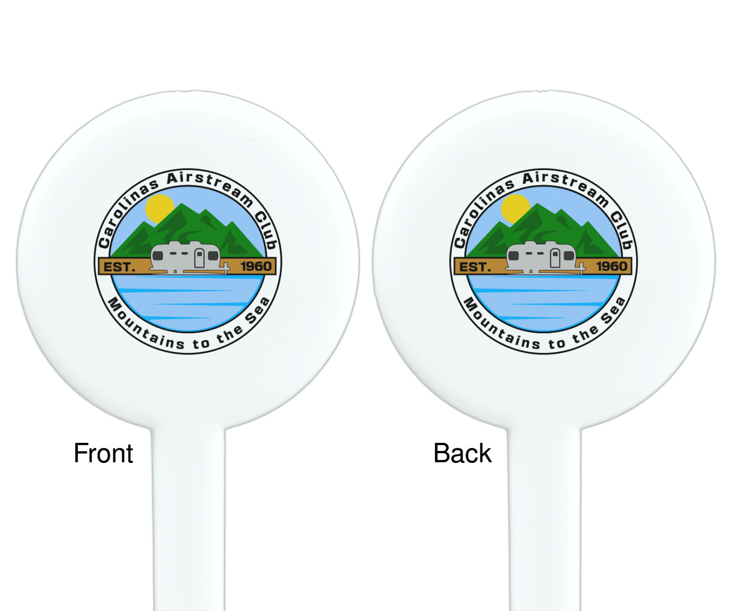 Carolina Airstream Club Design on Custom 7" Round Plastic Stir Sticks - White - Double-Sided