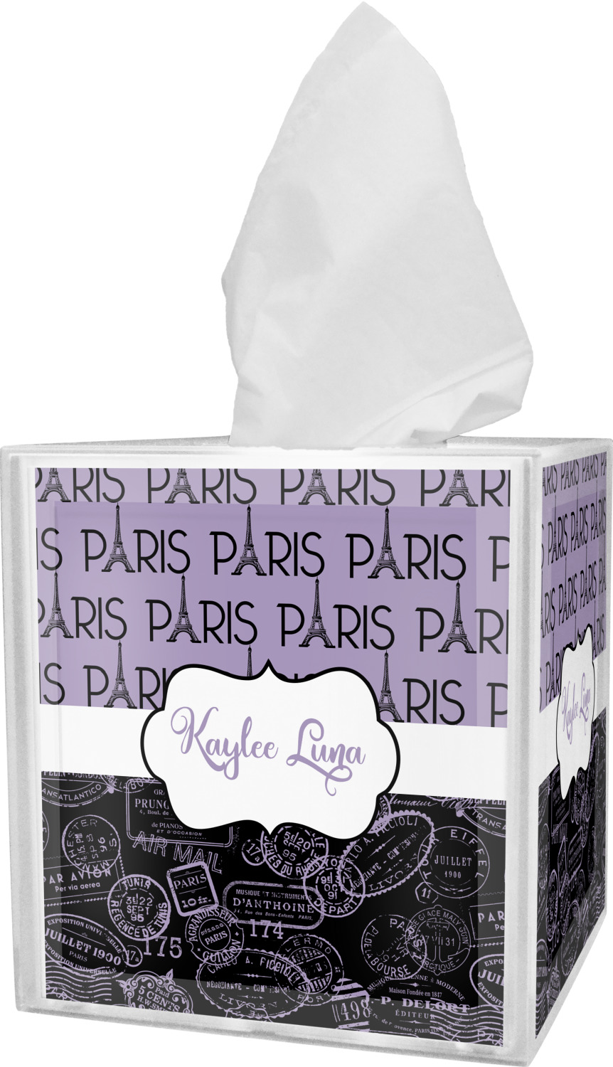 These tissue holders are built from durable acrylic and display your unique personalization on fine-quality vinyl inserts placed within the four sides and top. The box features two pieces, allowing you to easily switch out tissue boxes. On the sides, you'll find ridges that ensure the top and base fit securely in place. The bottom of these tissue box holders has four, rubber, non-slip pads to prevent the box from scuffing any surface you decide to display it on. Each box can fit a standard 5-by-5-inch box of tissues.