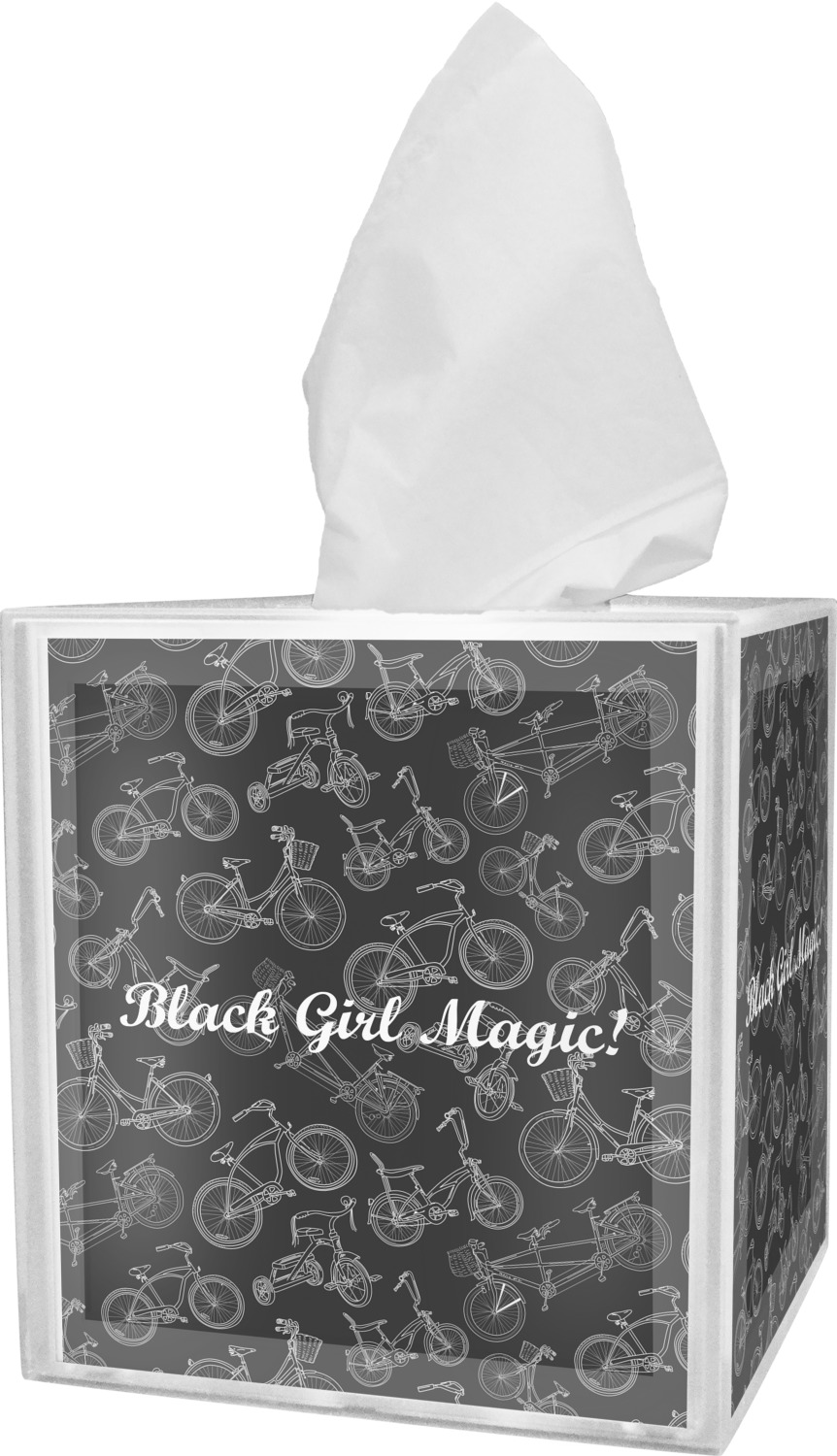 These tissue holders are built from durable acrylic and display your unique personalization on fine-quality vinyl inserts placed within the four sides and top. The box features two pieces, allowing you to easily switch out tissue boxes. On the sides, you'll find ridges that ensure the top and base fit securely in place. The bottom of these tissue box holders has four, rubber, non-slip pads to prevent the box from scuffing any surface you decide to display it on. Each box can fit a standard 5-by-5-inch box of tissues.