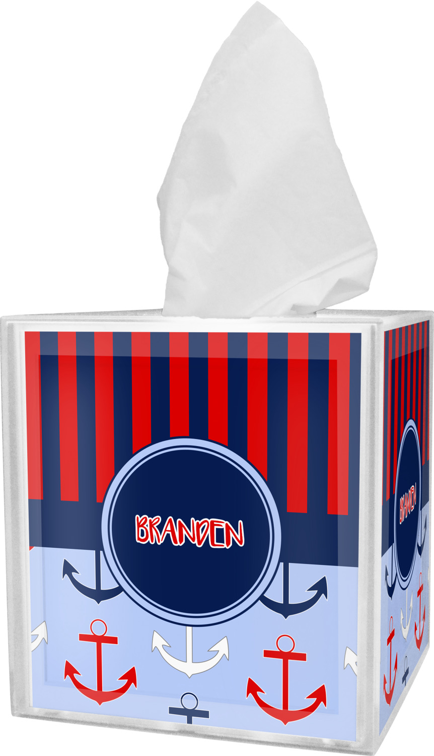 These tissue holders are built from durable acrylic and display your unique personalization on fine-quality vinyl inserts placed within the four sides and top. The box features two pieces, allowing you to easily switch out tissue boxes. On the sides, you'll find ridges that ensure the top and base fit securely in place. The bottom of these tissue box holders has four, rubber, non-slip pads to prevent the box from scuffing any surface you decide to display it on. Each box can fit a standard 5-by-5-inch box of tissues.