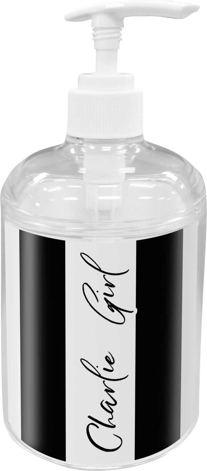 These lotion dispensers are crafted from sturdy acrylic and will withstand daily use. Each soap dispenser pump has a screw-off lid that allows you to easily fill the bottle with any soap or lotion of your choice. The bottle itself features 3 different pieces: a base, a liquid holding container, and a pump. The included pump is durable, ideal for controlled dispensing, and swivels for your convenience. Each of these soap pumps holds 9 ounces of liquid and measures about 2.75 by 2.75 by 6 inches. Your customization is displayed across fine-quality vinyl inserts.