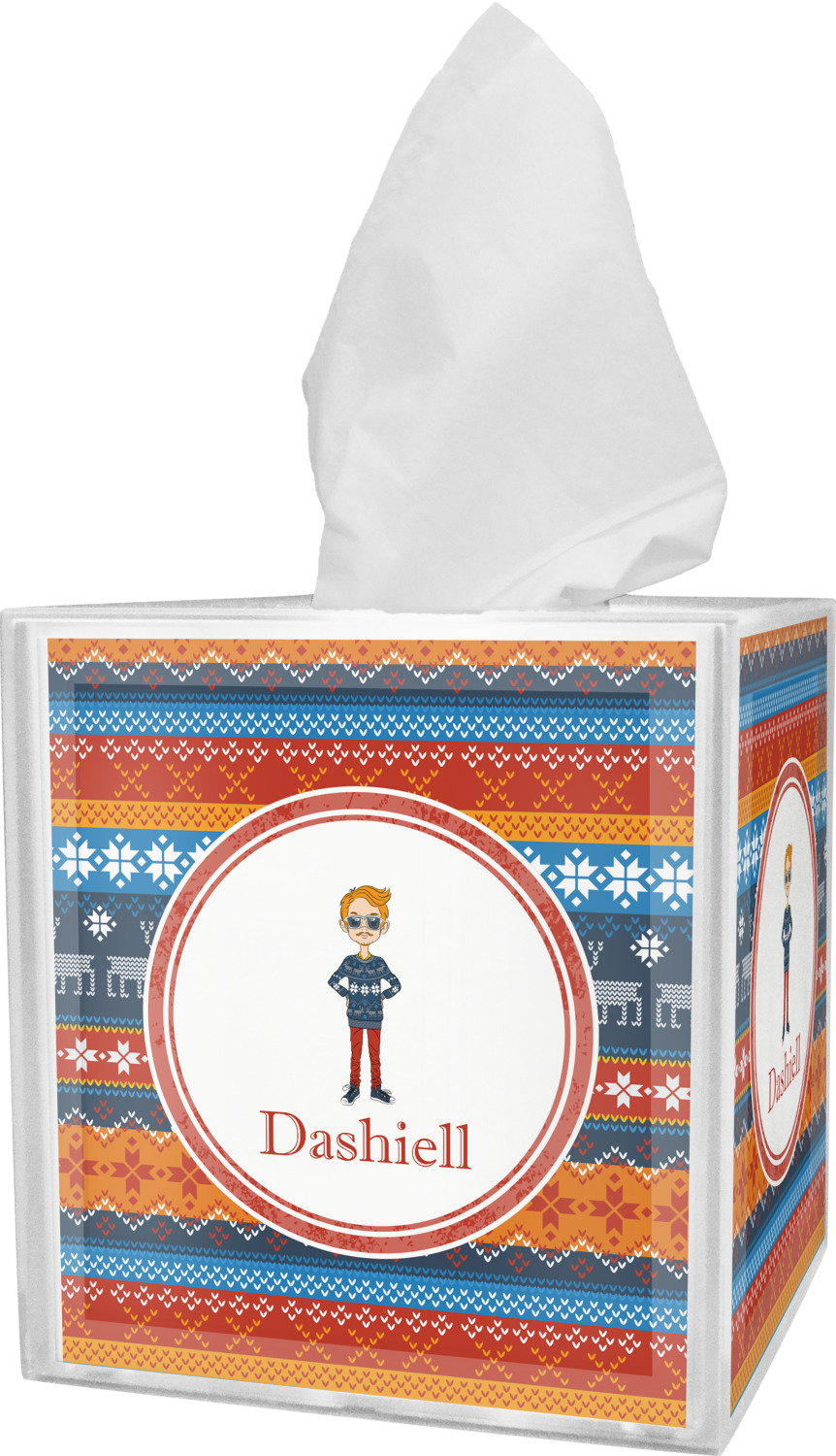 These tissue holders are built from durable acrylic and display your unique personalization on fine-quality vinyl inserts placed within the four sides and top. The box features two pieces, allowing you to easily switch out tissue boxes. On the sides, you'll find ridges that ensure the top and base fit securely in place. The bottom of these tissue box holders has four, rubber, non-slip pads to prevent the box from scuffing any surface you decide to display it on. Each box can fit a standard 5-by-5-inch box of tissues.