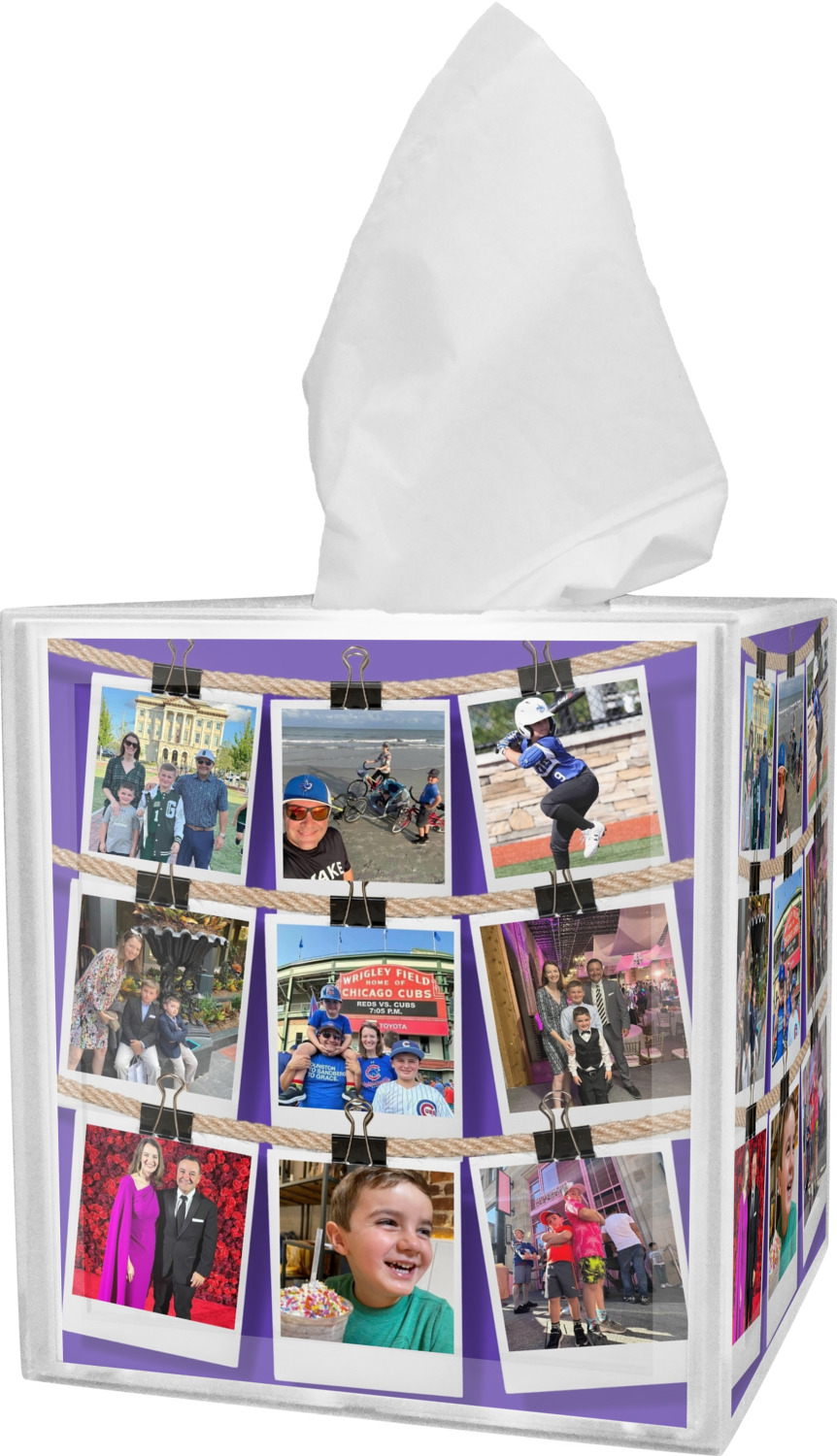 These tissue holders are built from durable acrylic and display your unique personalization on fine-quality vinyl inserts placed within the four sides and top. The box features two pieces, allowing you to easily switch out tissue boxes. On the sides, you'll find ridges that ensure the top and base fit securely in place. The bottom of these tissue box holders has four, rubber, non-slip pads to prevent the box from scuffing any surface you decide to display it on. Each box can fit a standard 5-by-5-inch box of tissues.