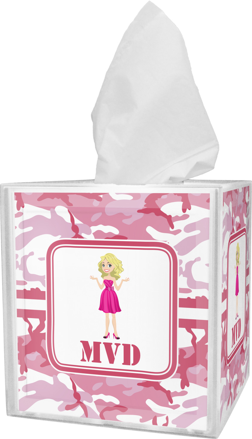 These tissue holders are built from durable acrylic and display your unique personalization on fine-quality vinyl inserts placed within the four sides and top. The box features two pieces, allowing you to easily switch out tissue boxes. On the sides, you'll find ridges that ensure the top and base fit securely in place. The bottom of these tissue box holders has four, rubber, non-slip pads to prevent the box from scuffing any surface you decide to display it on. Each box can fit a standard 5-by-5-inch box of tissues.