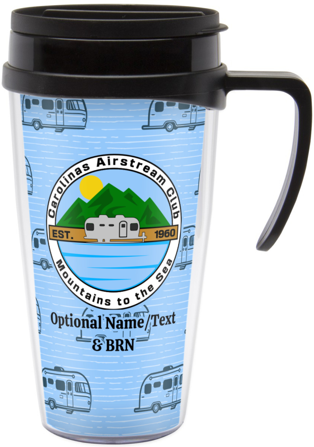 Carolina Airstream Club Design on Custom Acrylic Travel Mug with Handle
