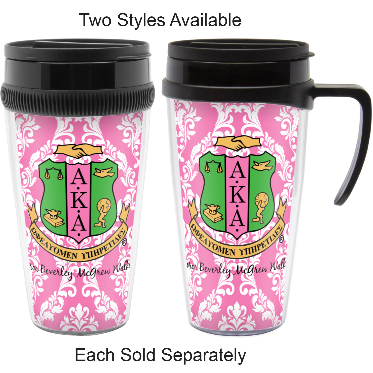 These thermal mugs are free of BPA, and insulated, to keep your drinks hot or cold. The black, snap on lid and the slider for sipping allows you to conveniently sip your drink without constantly worrying about a disastrous spill. We offer this mug with and without a handle, to better suit your needs. Each custom thermal mug holds up to 16 ounces of liquid and displays your customization on all sides on premium gloss media inserts.