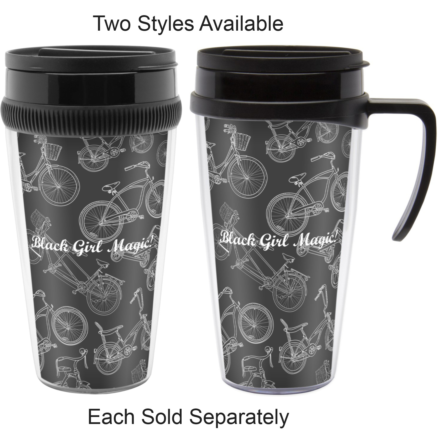 These thermal mugs are free of BPA, and insulated, to keep your drinks hot or cold. The black, snap on lid and the slider for sipping allows you to conveniently sip your drink without constantly worrying about a disastrous spill. We offer this mug with and without a handle, to better suit your needs. Each custom thermal mug holds up to 16 ounces of liquid and displays your customization on all sides on premium gloss media inserts.