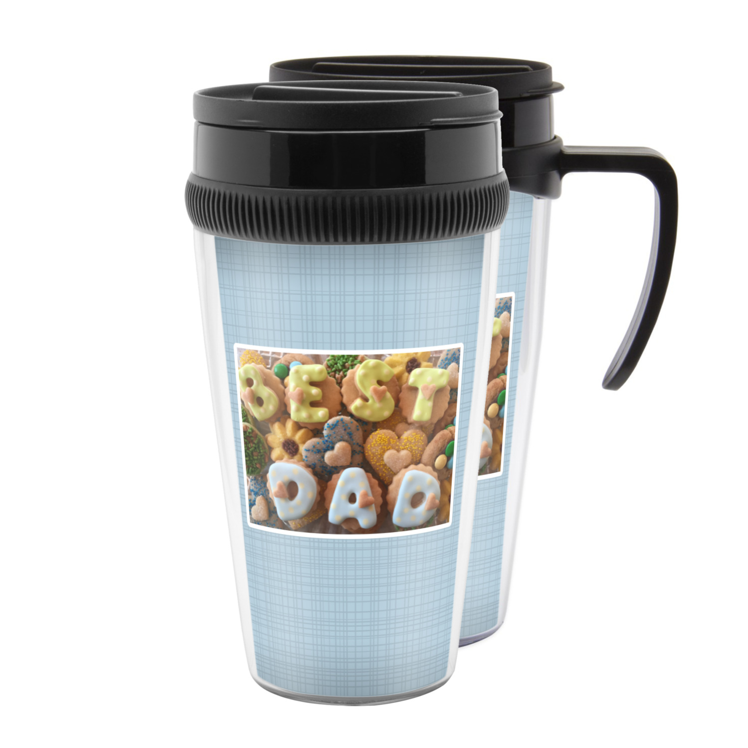 Keep your drink secure while on your daily commute with one of our personalized travel mugs! These travel mugs will add a splash of color and creativity to your kitchen counter-top, car cup holder, office desk, or wherever you choose to place them! With these custom mugs, you'll never have to settle for a boring, run-of-the-mill travel mug.