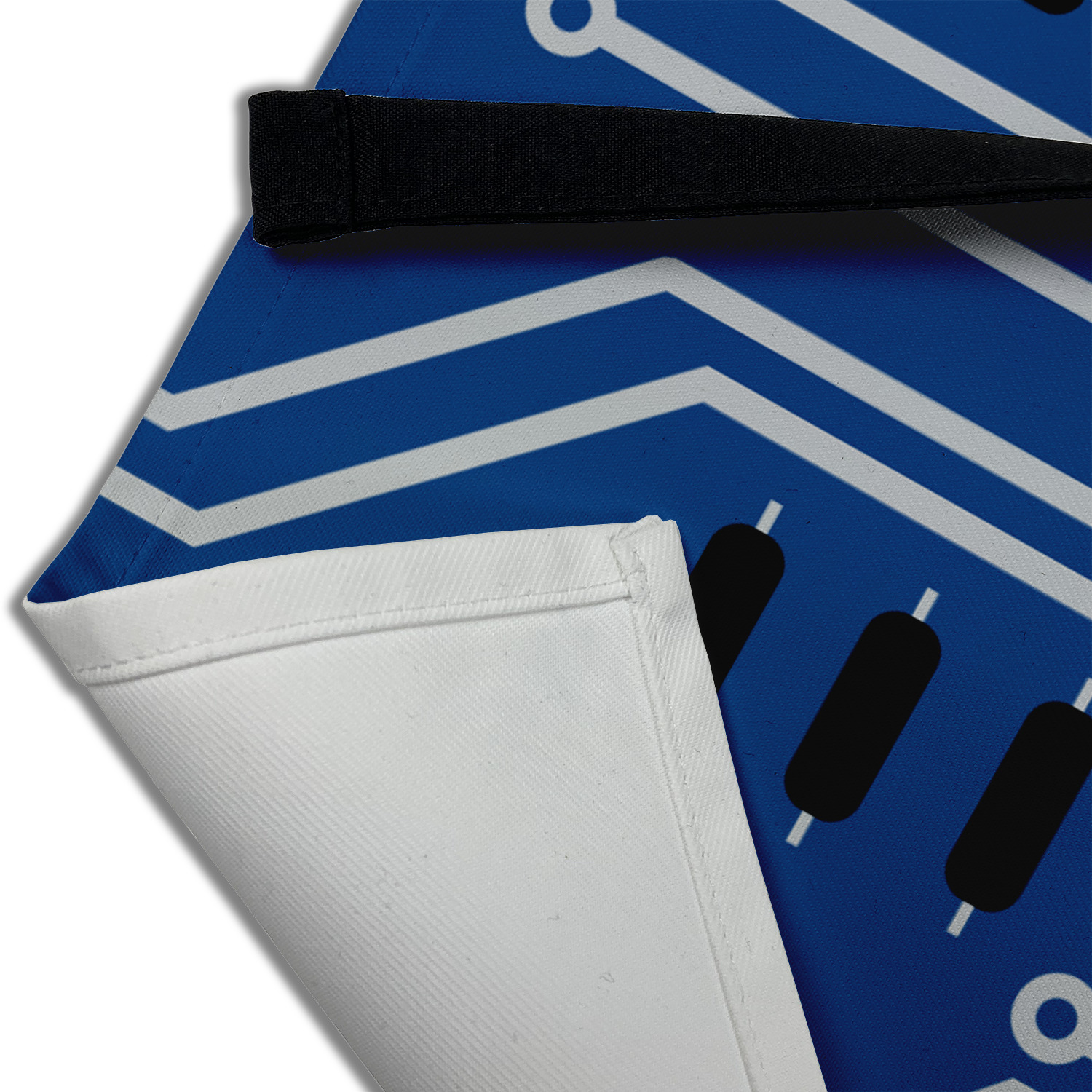 Our aprons are a lightweight yet durable polyester material. We offer two styles of aprons, one without pockets and one with two pockets adorning the center near the waistline. Each apron is one size* and comes with adjustable straps for both the neckline and waist. We print your custom design on the front of the apron to display your creativity!