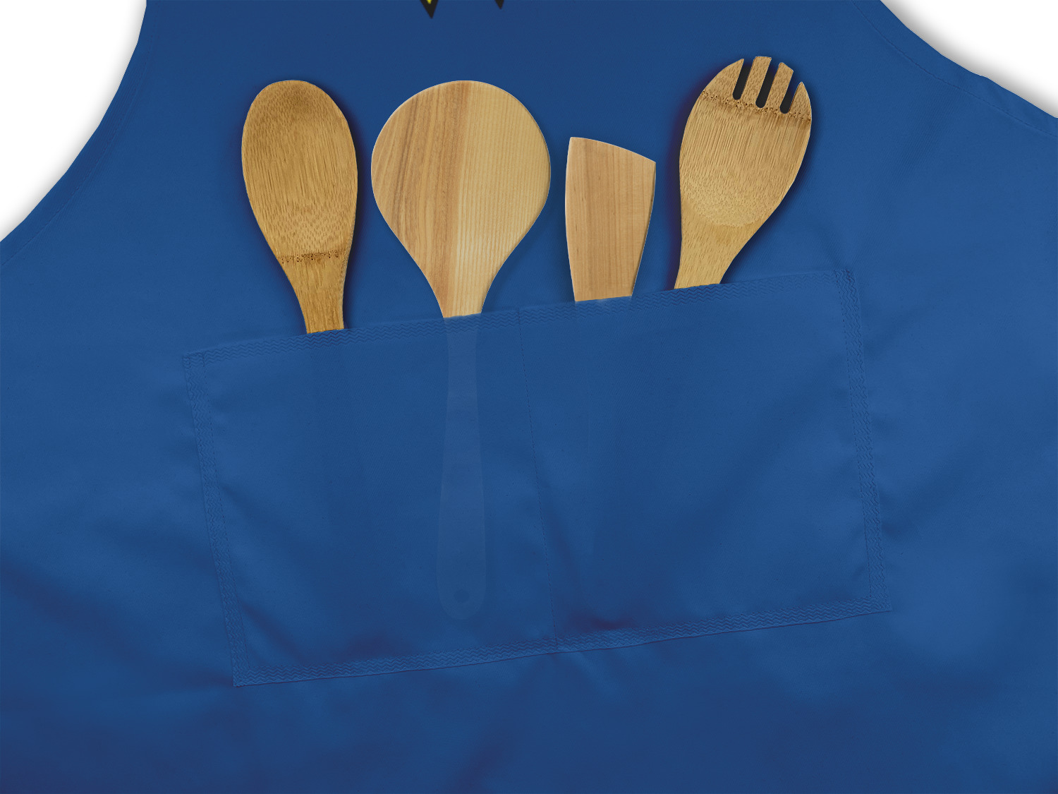 Our aprons are a lightweight yet durable polyester material. We offer two styles of aprons, one without pockets and one with two pockets adorning the center near the waistline. Each apron is one size* and comes with adjustable straps for both the neckline and waist. We print your custom design on the front of the apron to display your creativity!