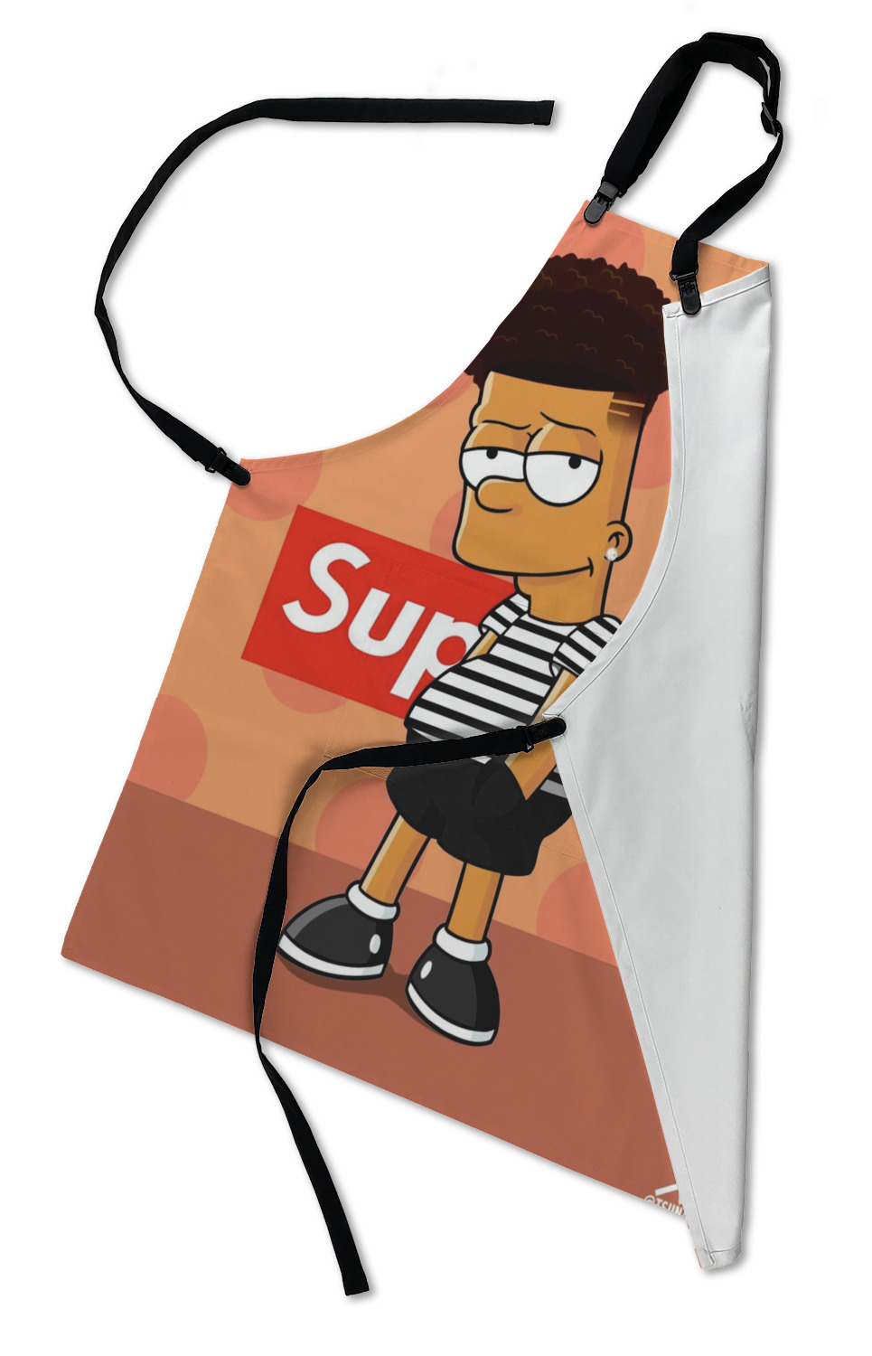 Our aprons are a lightweight yet durable polyester material. We offer two styles of aprons, one without pockets and one with two pockets adorning the center near the waistline. Each apron is one size* and comes with adjustable straps for both the neckline and waist. We print your custom design on the front of the apron to display your creativity!