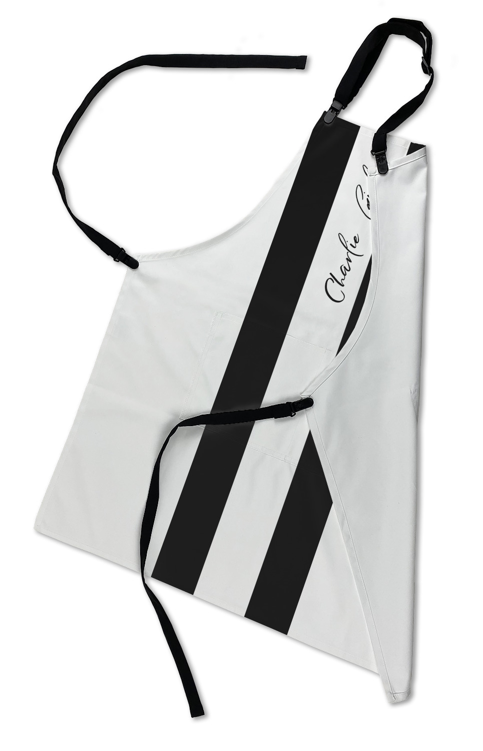 Our aprons are a lightweight yet durable polyester material. We offer two styles of aprons, one without pockets and one with two pockets adorning the center near the waistline. Each apron is one size* and comes with adjustable straps for both the neckline and waist. We print your custom design on the front of the apron to display your creativity!