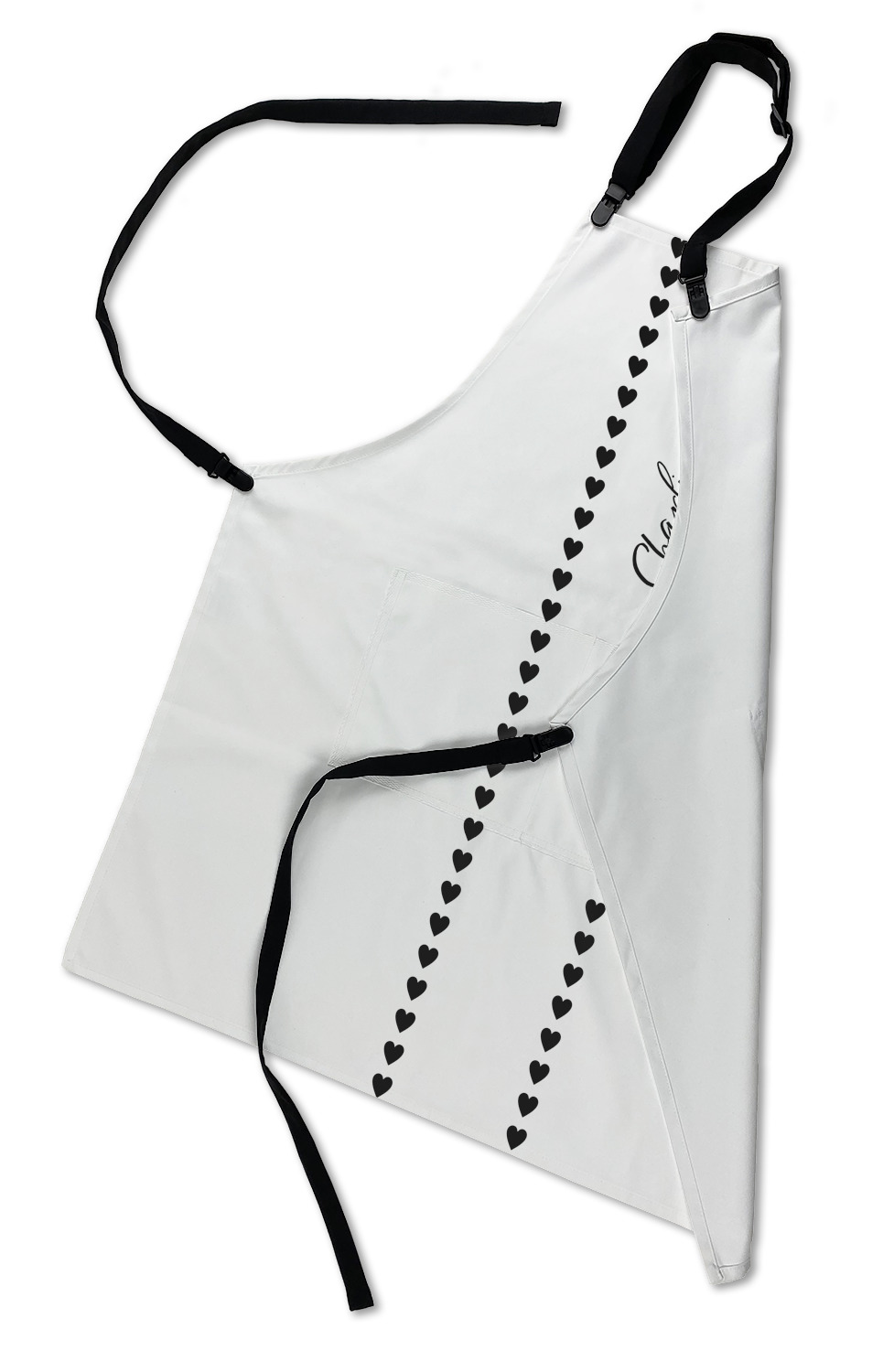 Our aprons are a lightweight yet durable polyester material. We offer two styles of aprons, one without pockets and one with two pockets adorning the center near the waistline. Each apron is one size* and comes with adjustable straps for both the neckline and waist. We print your custom design on the front of the apron to display your creativity!
