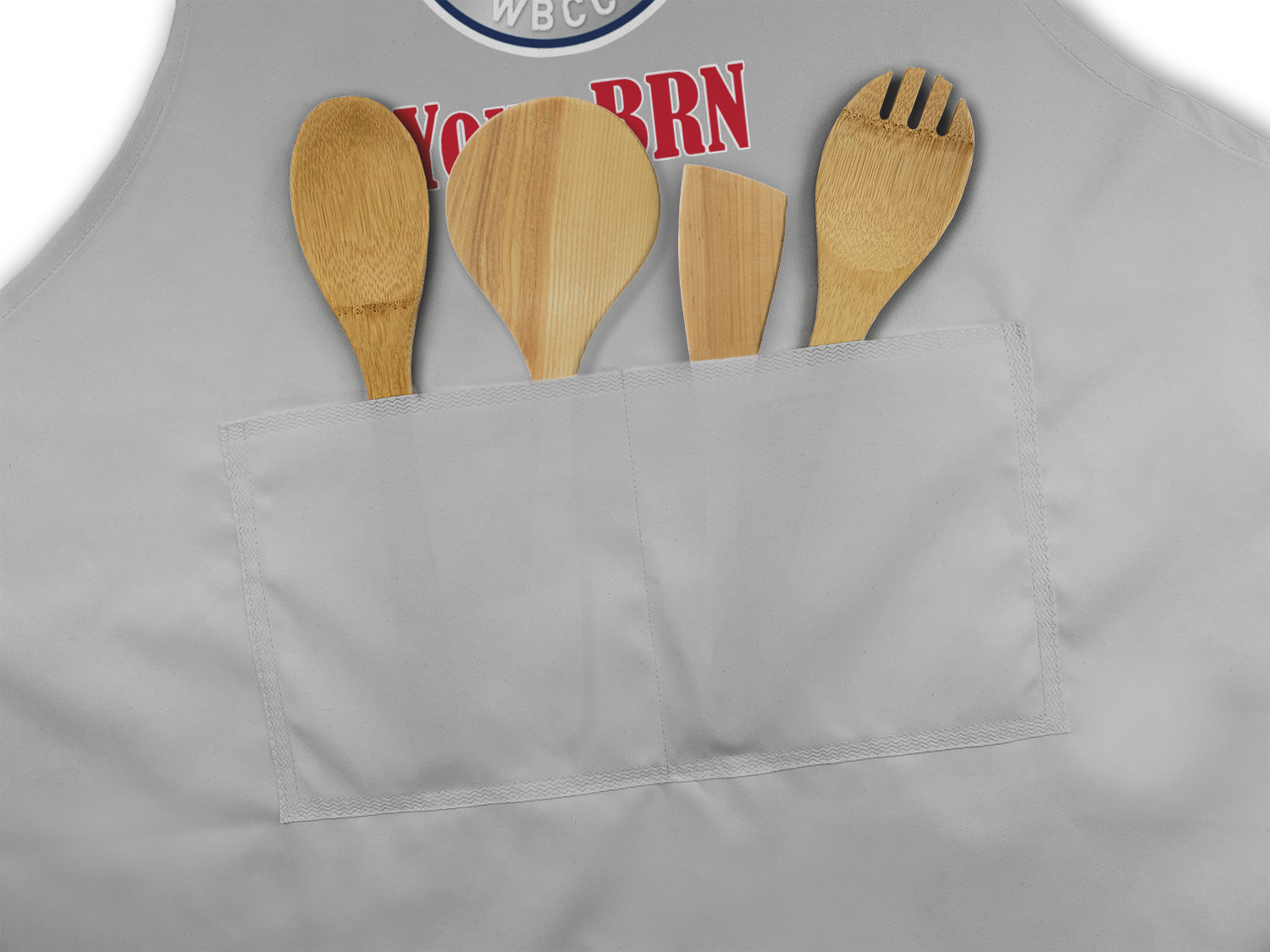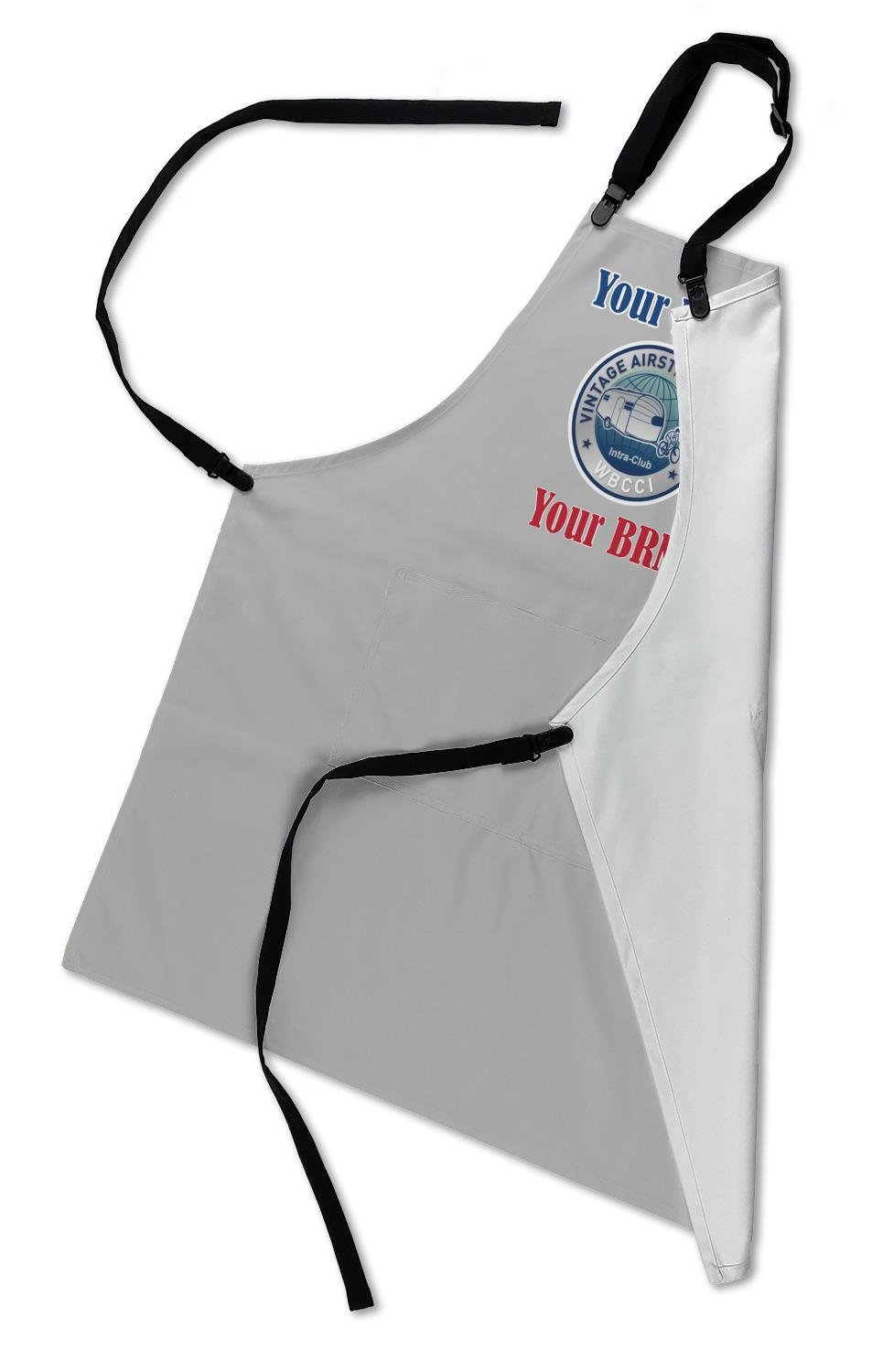 Our aprons are a lightweight yet durable polyester material. We offer two styles of aprons, one without pockets and one with two pockets adorning the center near the waistline. Each apron is one size* and comes with adjustable straps for both the neckline and waist. We print your custom design on the front of the apron to display your creativity!