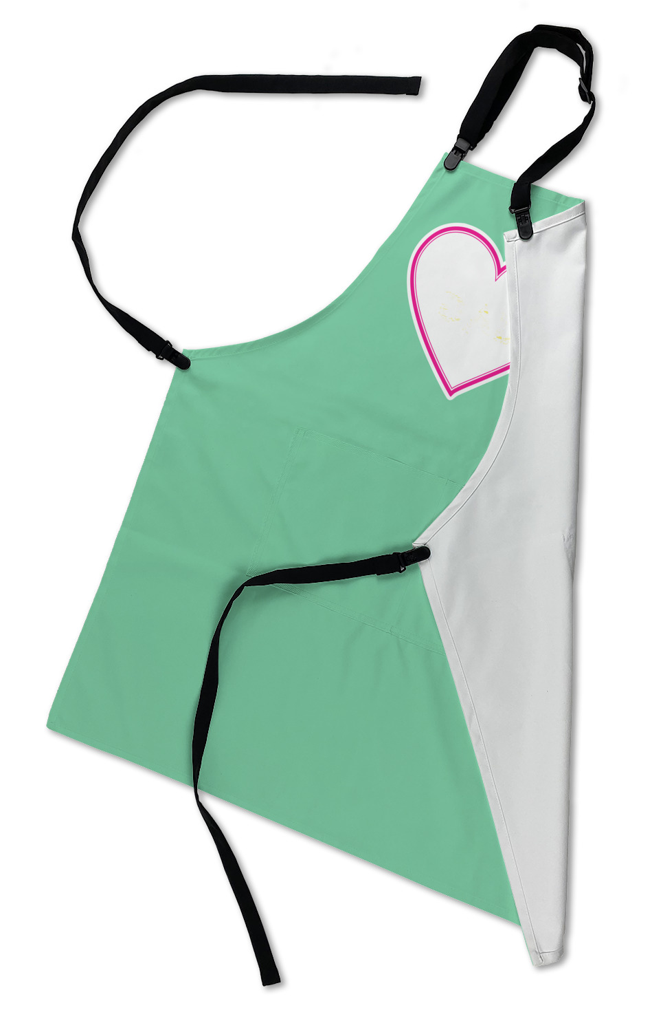 Our aprons are a lightweight yet durable polyester material. We offer two styles of aprons, one without pockets and one with two pockets adorning the center near the waistline. Each apron is one size* and comes with adjustable straps for both the neckline and waist. We print your custom design on the front of the apron to display your creativity!