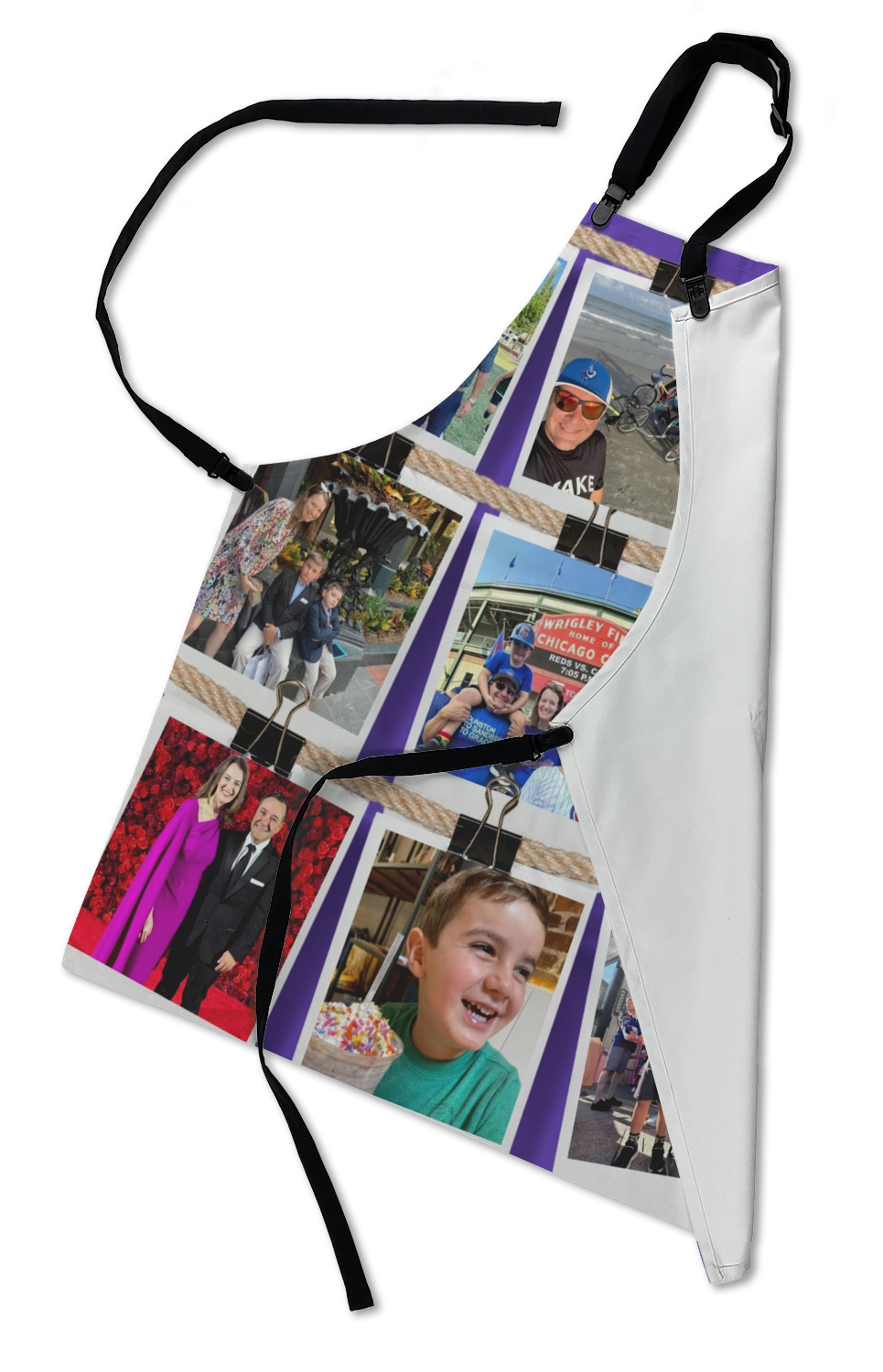 Give compliments to the chef with their own custom apron! From painting to grilling, our custom aprons are sure to keep your clothes in pristine condition for any activity! Personalize aprons with a name, pattern, or your favorite memory. Custom apron designs are also great for holiday dinners and get-togethers! Use one of our customizable designs or personalize your own apron with our online design studio!