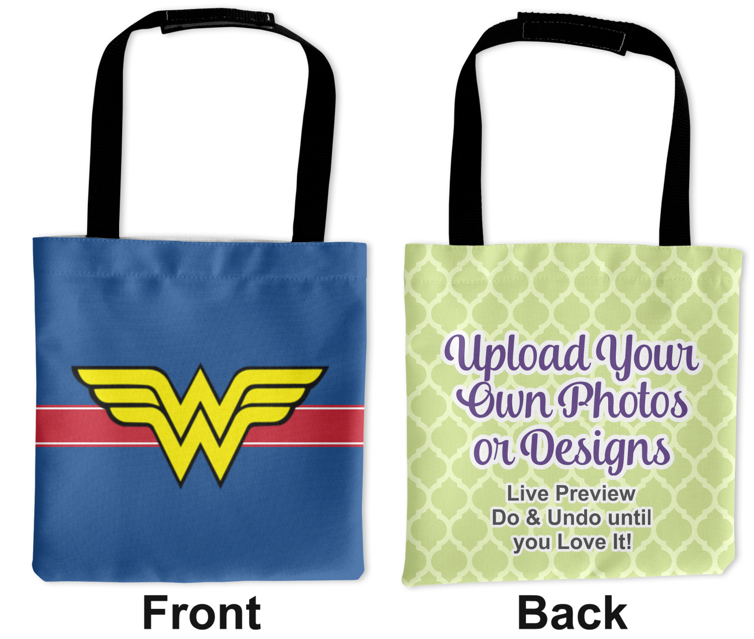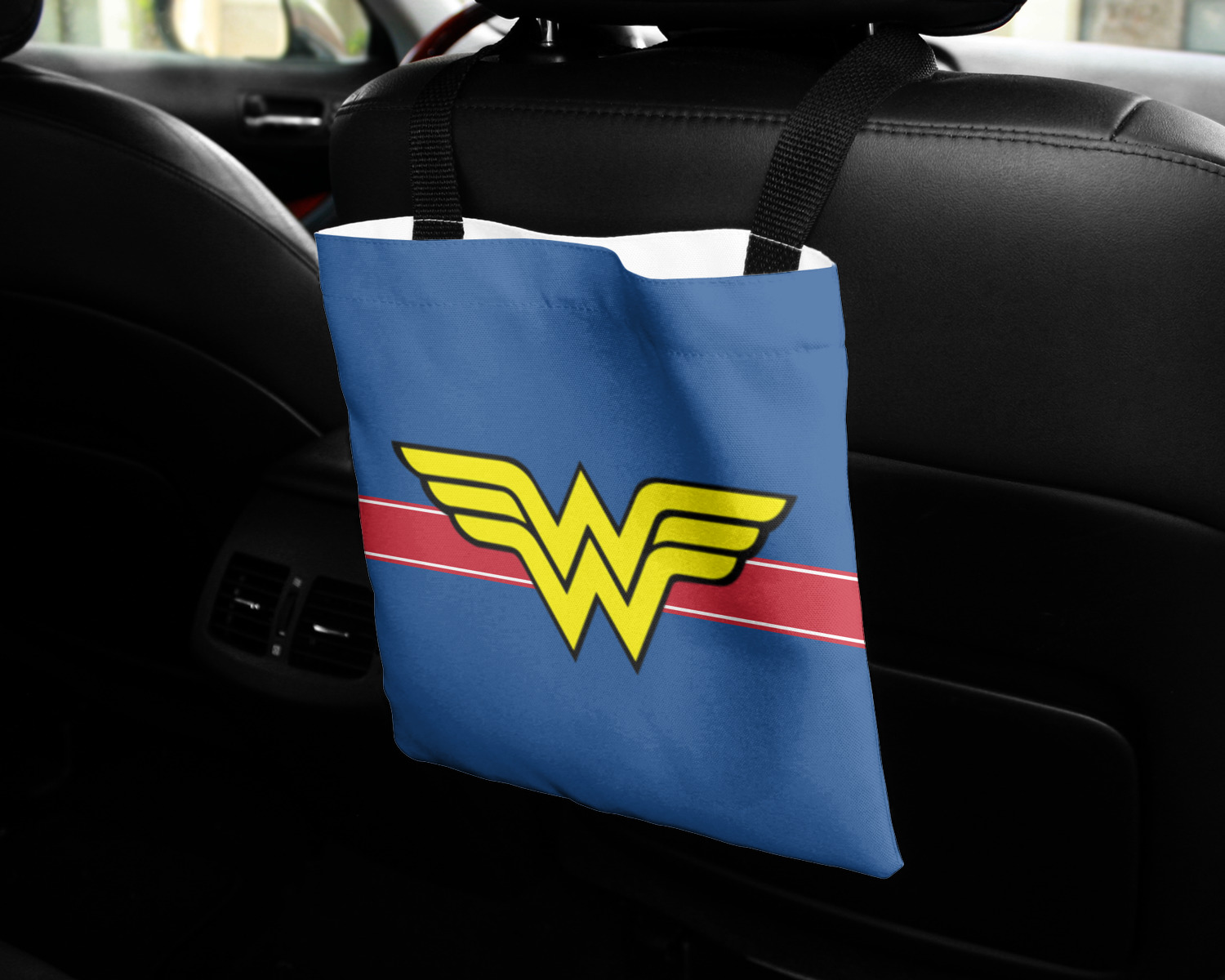 These car back seat organizers are sturdy tote-like bags, fabricated from a robust polyester, and features a single handle on the back side. The strap features an attachable velcro for easy attachment to headrests, grocery carts, car seats, and more. Simply undo the velcro, loop the strap around the headrest, reattach the velcro, and let the organizer hang from the front seat. These car organizers are the perfect means of increasing your backseat's legroom, while storing multiple items in one place for better accessibility. Each car back seat organizer measures at 10 by 10 inches, and features your personalized design printed across its front and back.