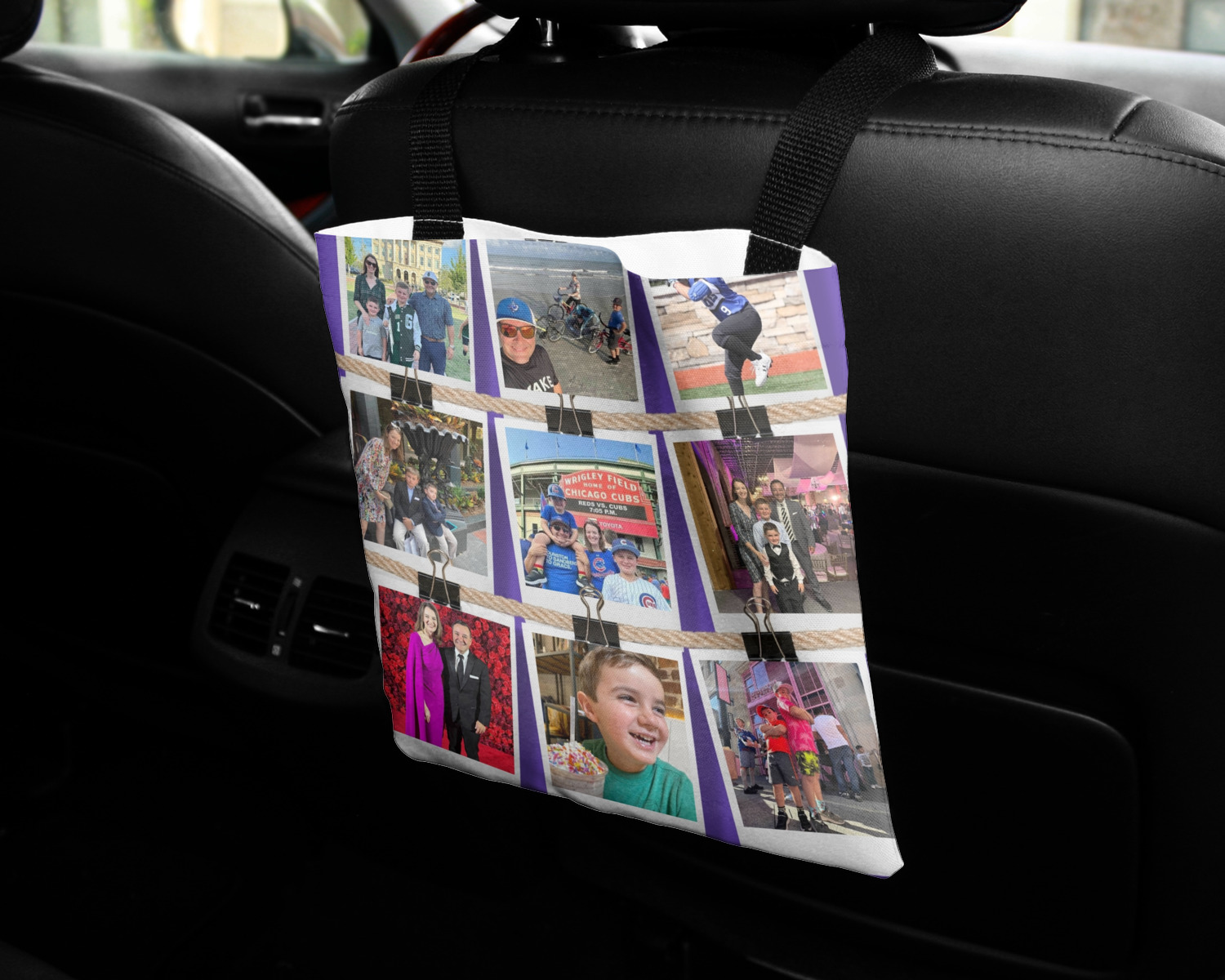 These car back seat organizers are sturdy tote-like bags, fabricated from a robust polyester, and features a single handle on the back side. The strap features an attachable velcro for easy attachment to headrests, grocery carts, car seats, and more. Simply undo the velcro, loop the strap around the headrest, reattach the velcro, and let the organizer hang from the front seat. These car organizers are the perfect means of increasing your backseat's legroom, while storing multiple items in one place for better accessibility. Each car back seat organizer measures at 10 by 10 inches, and features your personalized design printed across its front and back.