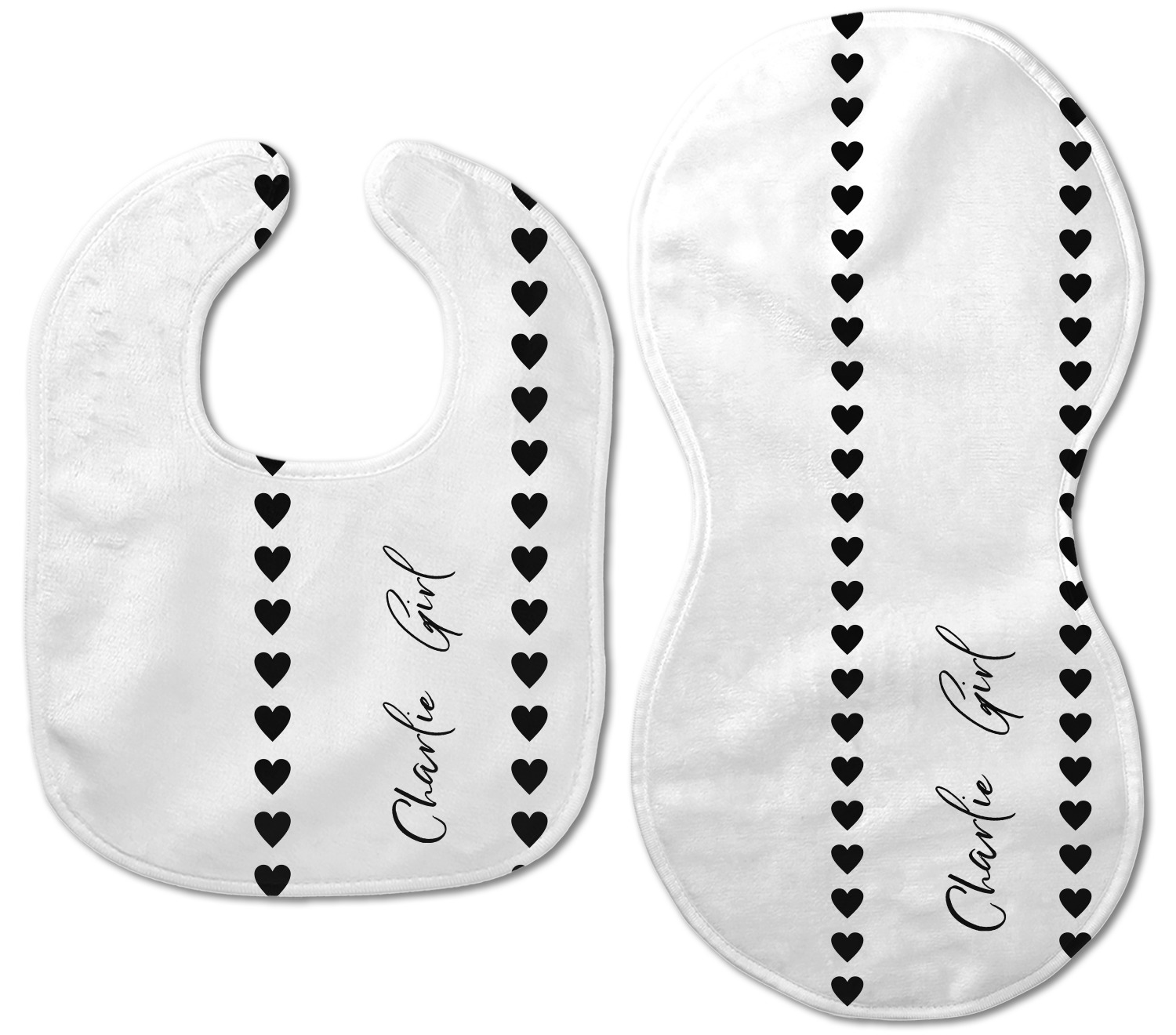 Who doesn't love an unique yet easy babyshower gift? Our baby bib and burp cloth set is a great duo for both the baby and parent. Custom bibs and personalized burp cloths are a fashionable yet functional essential to bring a little joy to nursing! This set includes the best drool bib and burp rag known for comfort and design! Create your own or use one of our custom designs!