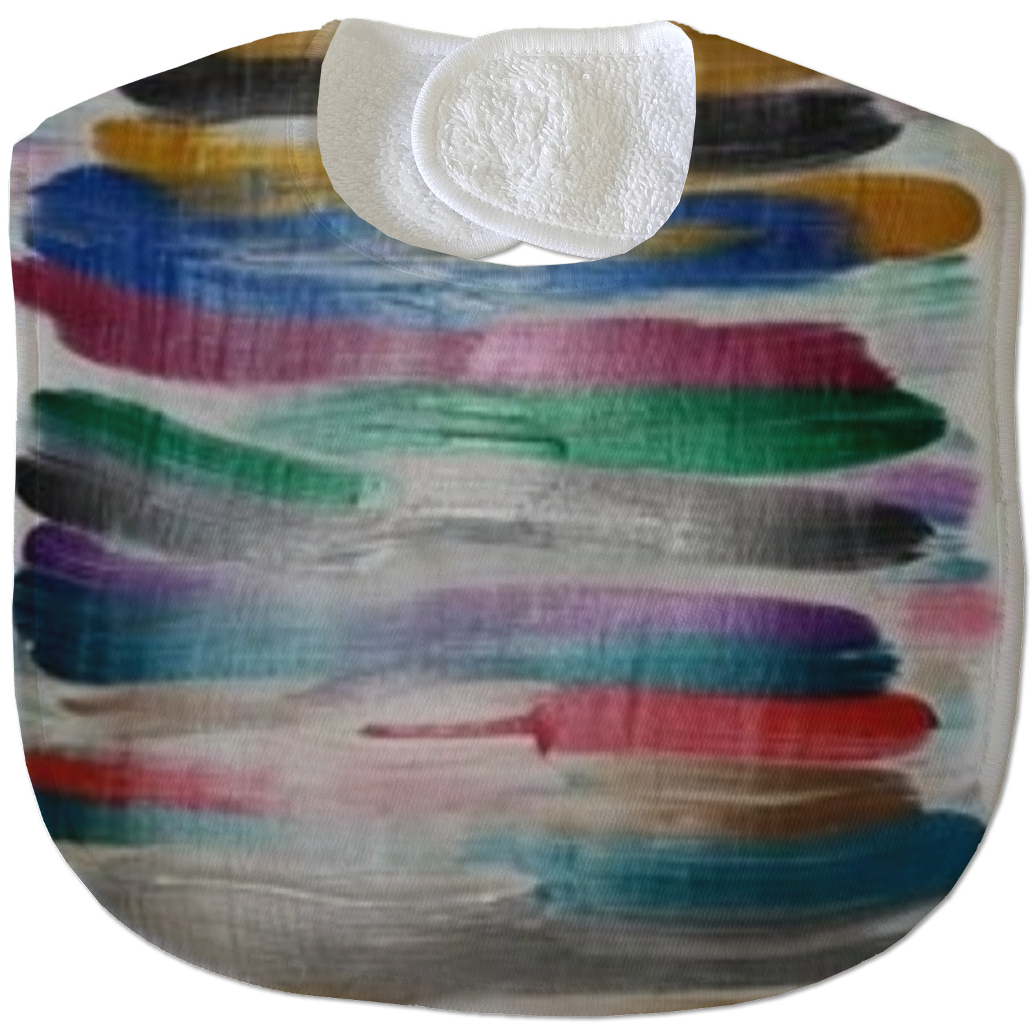 Both our baby bib and burp pad are made up of soft, microfiber velour with a cotton backing. The comfortable and plush material of our bib and burp set is perfect for both baby and parent. We print your design on the microfiber velour face fabric with baby safe ink on your customizable bib and burp cloth to ensure safety for the little one! Our drool bib also comes with a Velcro clasp for safe and easy wear while the burp cloth is a unique peanut shape that perfectly hugs over the shoulder.