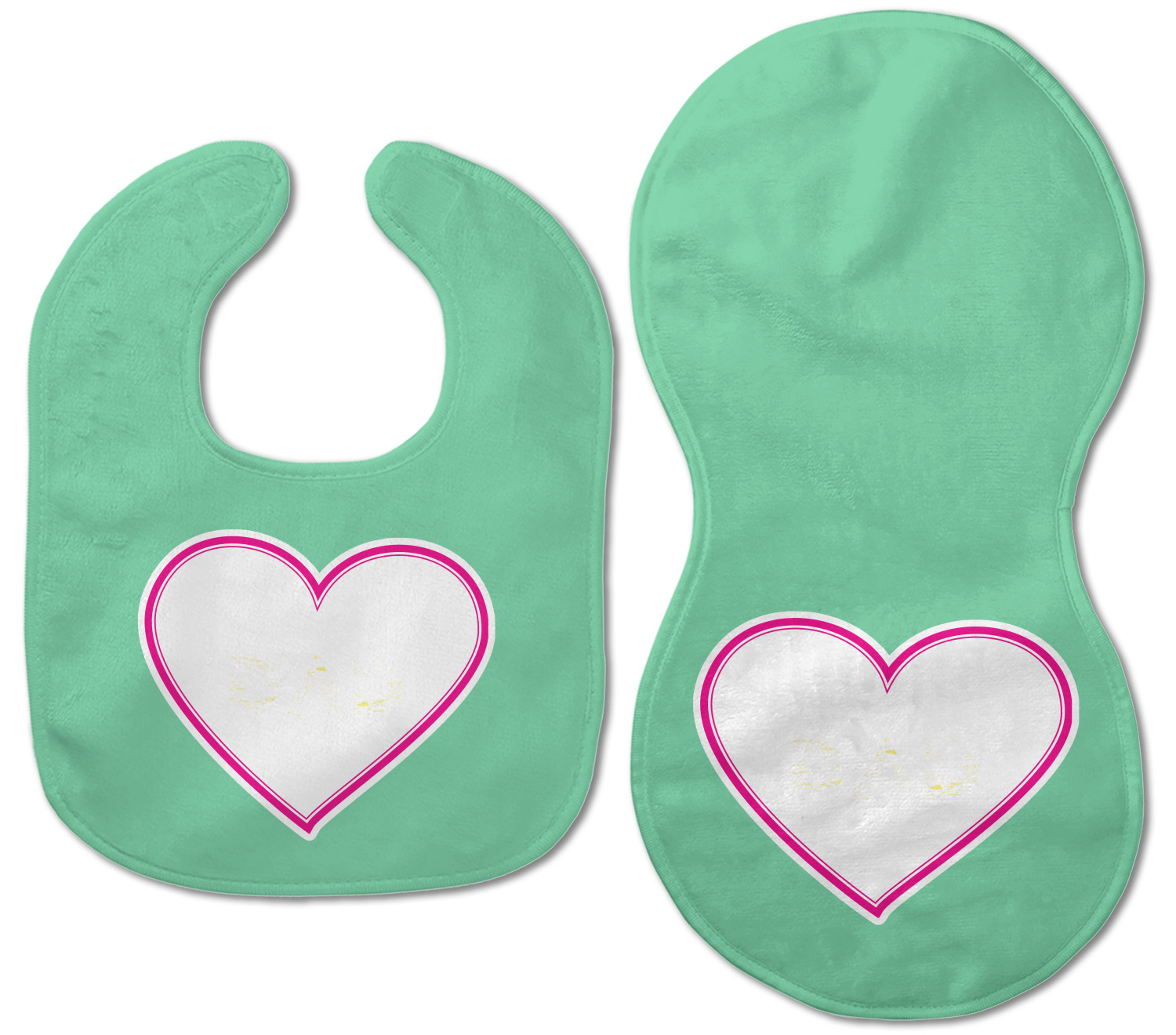 Both our baby bib and burp pad are made up of soft, microfiber velour with a cotton backing. The comfortable and plush material of our bib and burp set is perfect for both baby and parent. We print your design on the microfiber velour face fabric with baby safe ink on your customizable bib and burp cloth to ensure safety for the little one! Our drool bib also comes with a Velcro clasp for safe and easy wear while the burp cloth is a unique peanut shape that perfectly hugs over the shoulder.