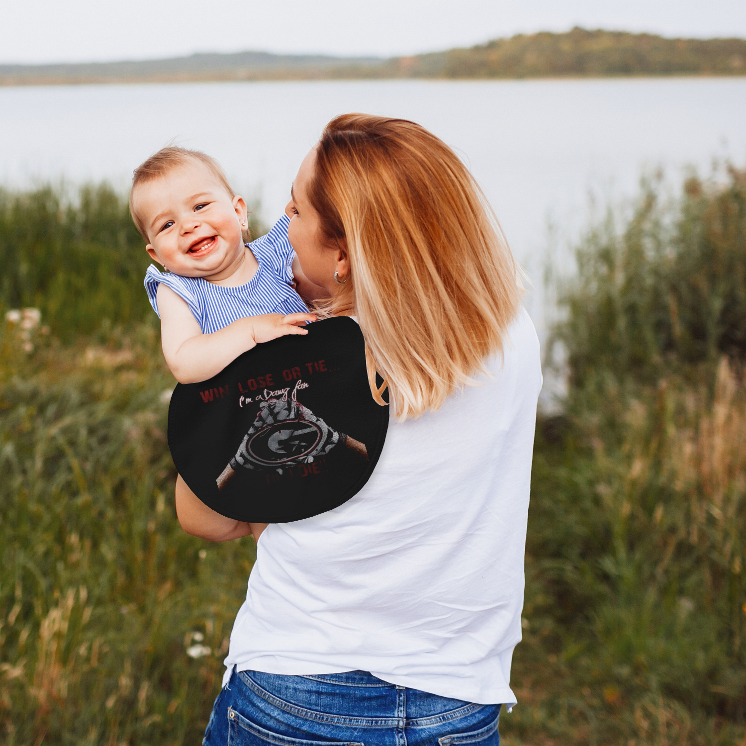 Both our baby bib and burp pad are made up of soft, microfiber velour with a cotton backing. The comfortable and plush material of our bib and burp set is perfect for both baby and parent. We print your design on the microfiber velour face fabric with baby safe ink on your customizable bib and burp cloth to ensure safety for the little one! Our drool bib also comes with a Velcro clasp for safe and easy wear while the burp cloth is a unique peanut shape that perfectly hugs over the shoulder.