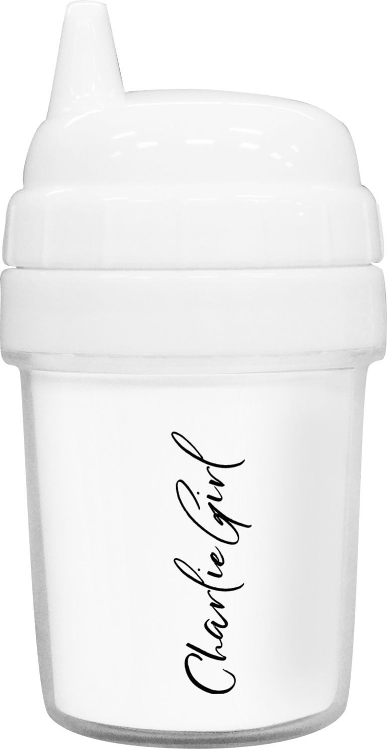 Our toddler cups are free of BPA, and have a twist-open lid so that you can easily fill and clean these cups for your young ones. Each cup also comes with a sippy nozzle to reduce spills. We offer these custom sippy cups in two different sizes; we have a baby sippy cup that holds 5 ounces, and a toddler sippy cup that holds 10 ounces. Your customization is printed on a premium glossy media insert that is placed within these toddler drinking cups.