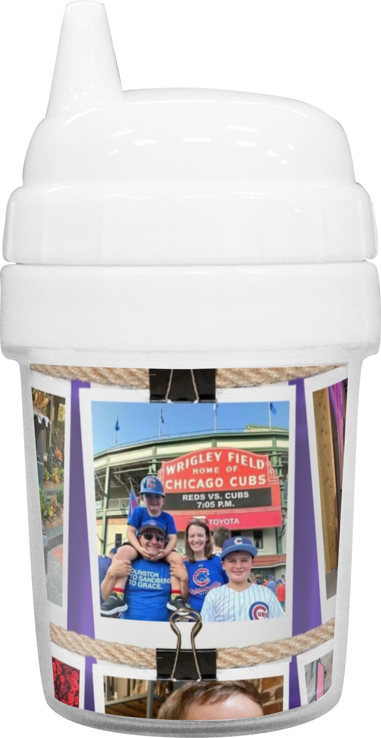 Our toddler cups are free of BPA, and have a twist-open lid so that you can easily fill and clean these cups for your young ones. Each cup also comes with a sippy nozzle to reduce spills. We offer these custom sippy cups in two different sizes; we have a baby sippy cup that holds 5 ounces, and a toddler sippy cup that holds 10 ounces. Your customization is printed on a premium glossy media insert that is placed within these toddler drinking cups.