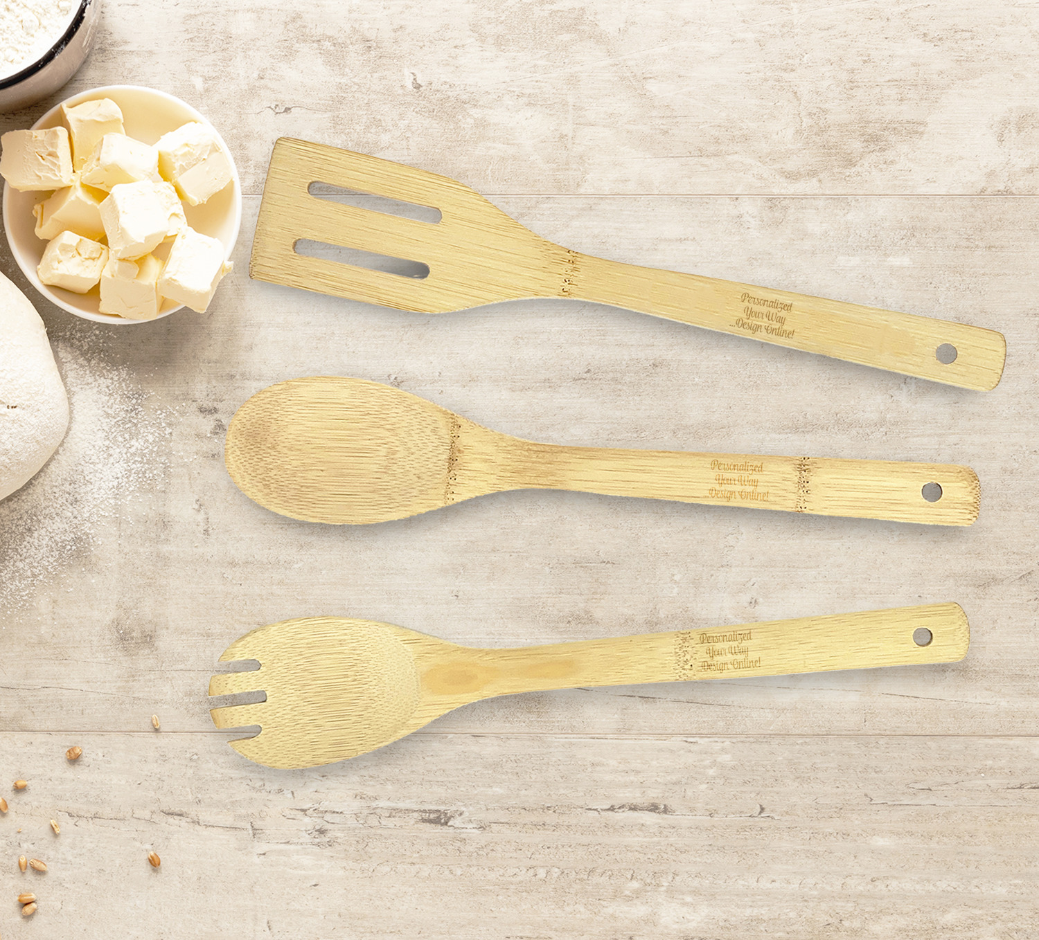 Make cooking in the kitchen a wonderful and personal experience with these personalized cooking utensils. Buy them individually or as a set - either way these high quality bamboo cooking utensils are sure to add a nice unique element to your kitchen.