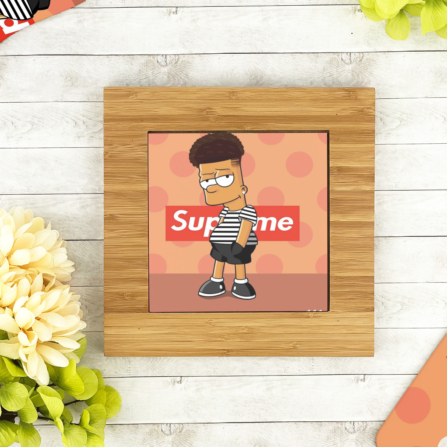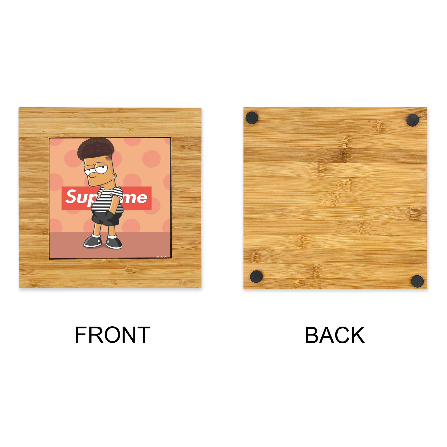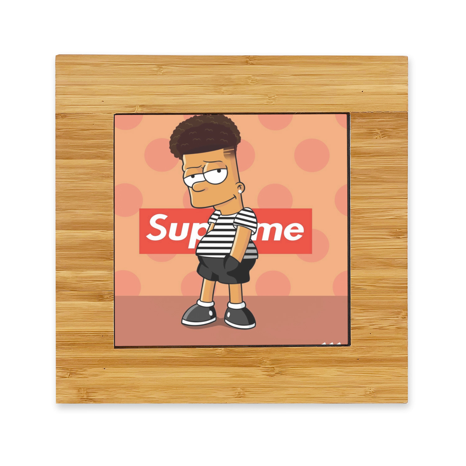 The center is highlighted by a 6in ceramic tile that is printed with the design of your choice. The tile sits slightly higher than the bamboo to ensure the majority of the heat stays on the tile not on the bamboo.