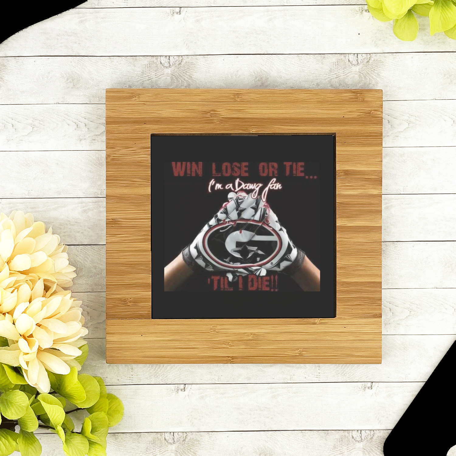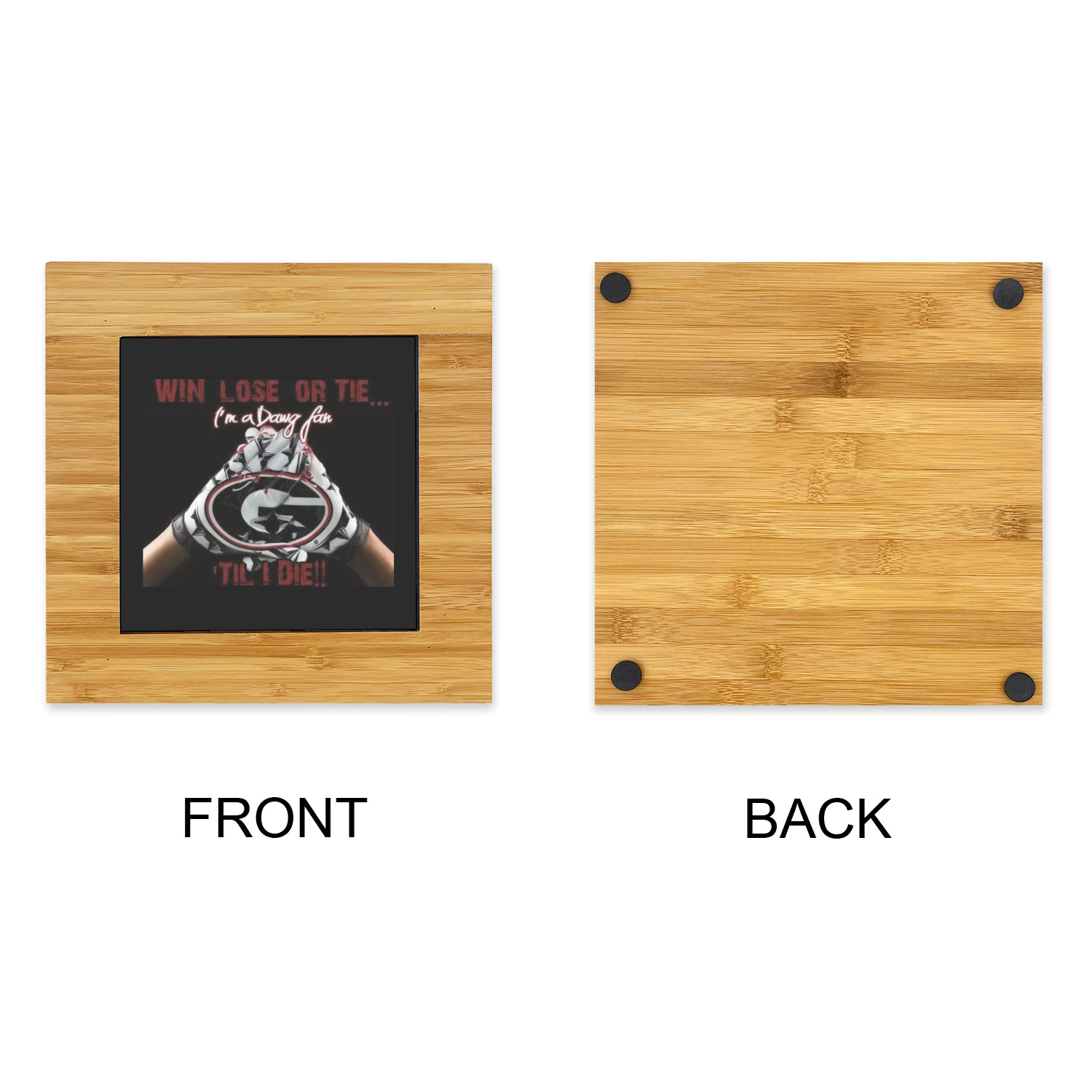 The center is highlighted by a 6in ceramic tile that is printed with the design of your choice. The tile sits slightly higher than the bamboo to ensure the majority of the heat stays on the tile not on the bamboo.