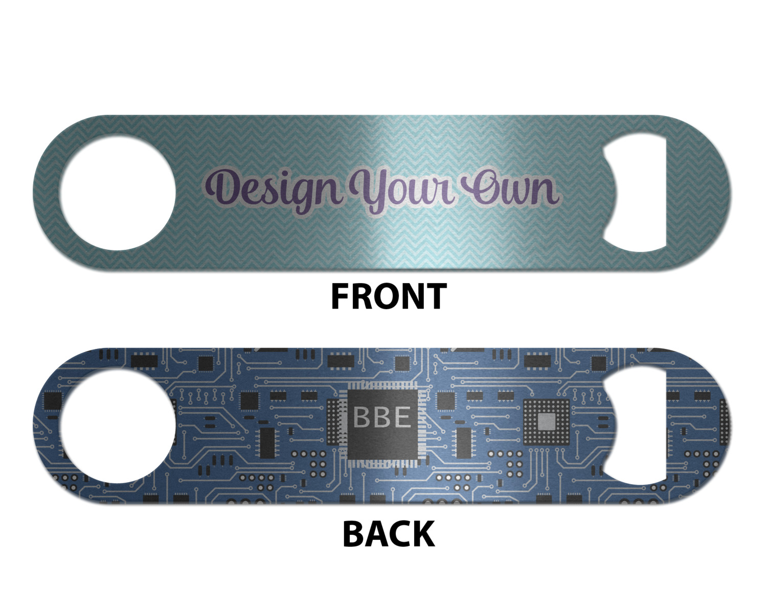 Stop struggling with the caps or your bottled beverages by purchasing one of our personalized bottle openers! These wrench-like custom bar blades are built to last. Customize one for your home's bar, or as a practical gift for a loved one!
