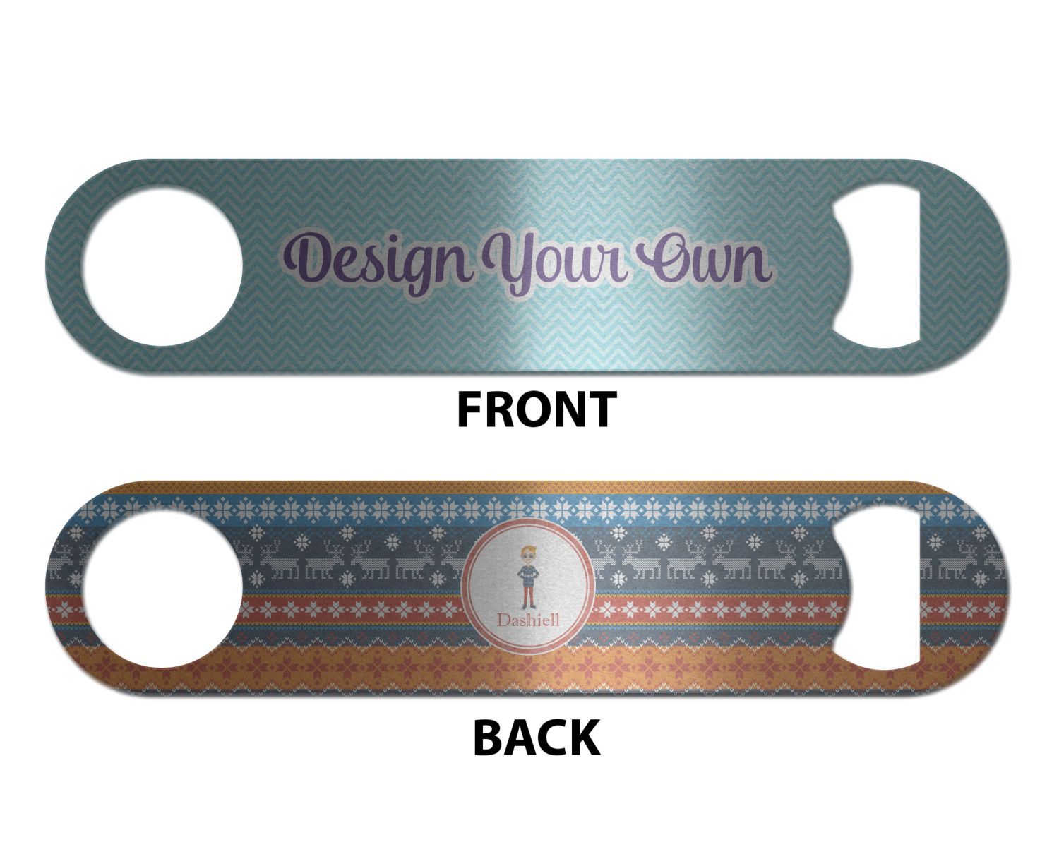 Stop struggling with the caps or your bottled beverages by purchasing one of our personalized bottle openers! These wrench-like custom bar blades are built to last. Customize one for your home's bar, or as a practical gift for a loved one!