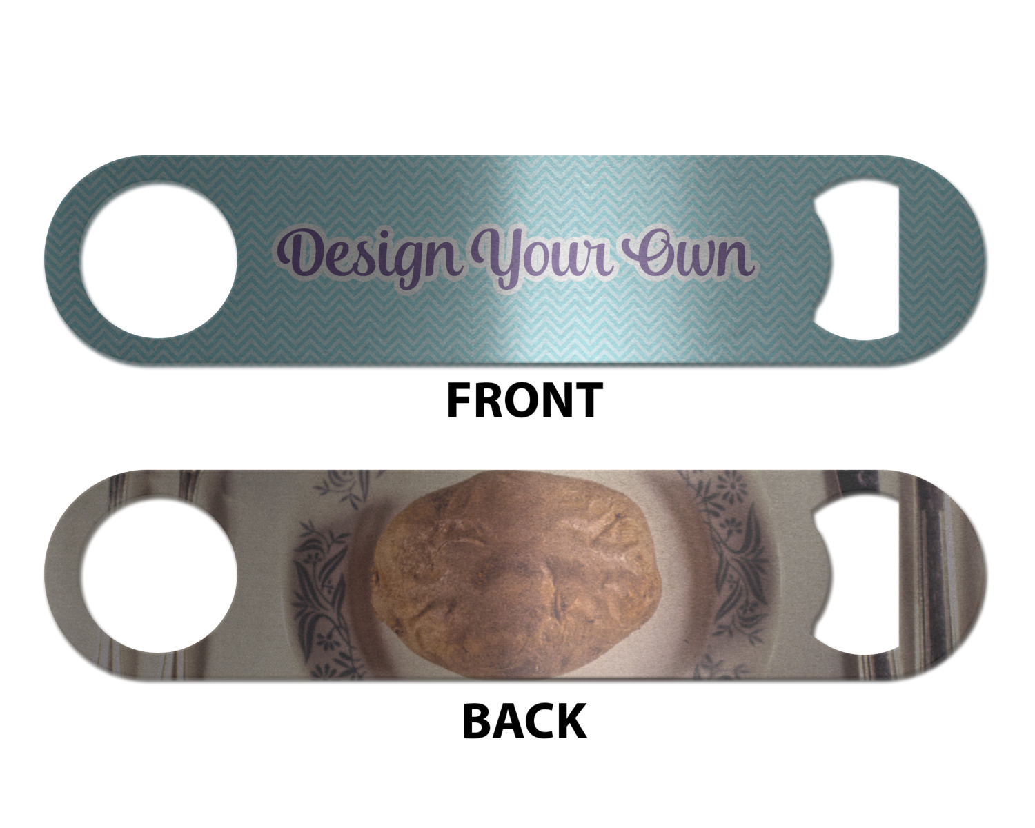Stop struggling with the caps or your bottled beverages by purchasing one of our personalized bottle openers! These wrench-like custom bar blades are built to last. Customize one for your home's bar, or as a practical gift for a loved one!