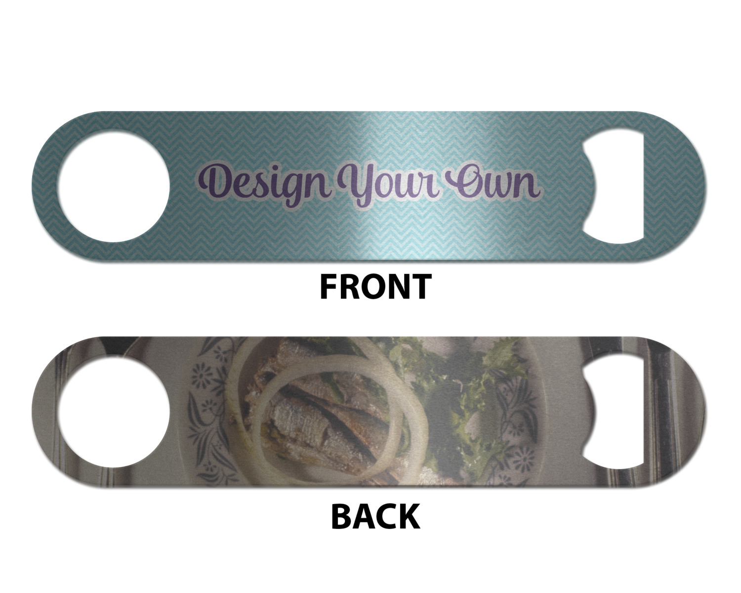 Stop struggling with the caps or your bottled beverages by purchasing one of our personalized bottle openers! These wrench-like custom bar blades are built to last. Customize one for your home's bar, or as a practical gift for a loved one!