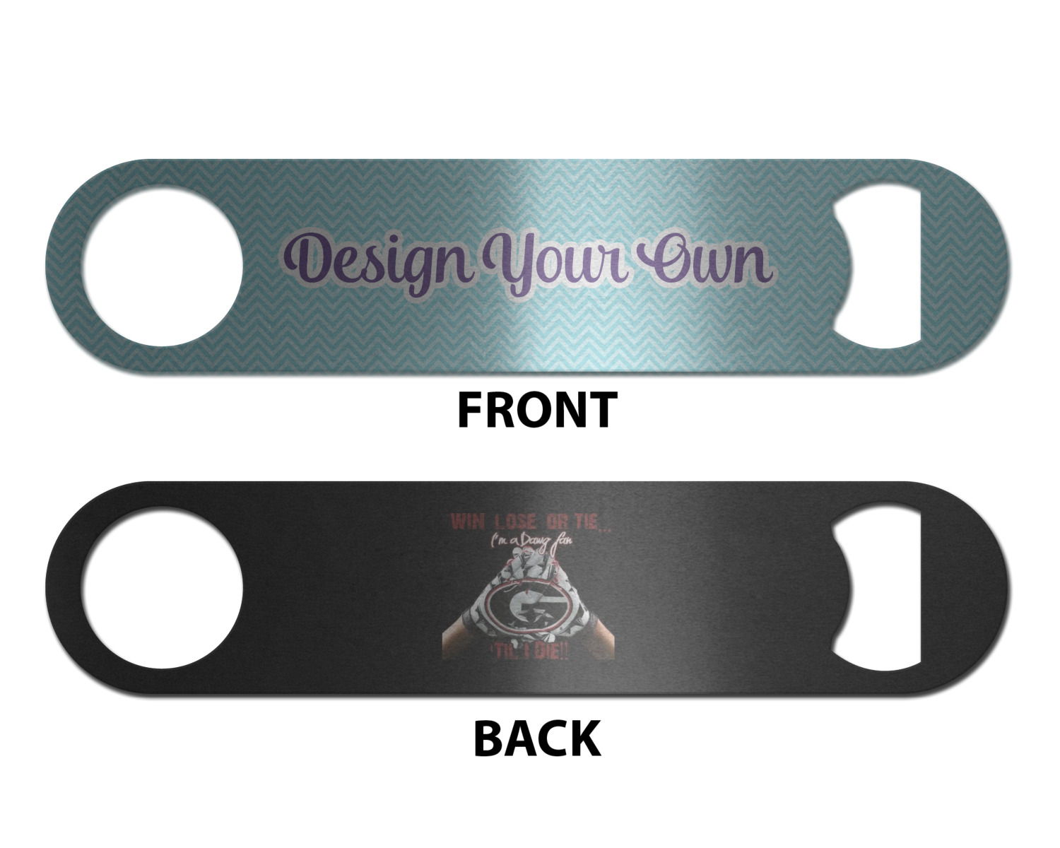 Stop struggling with the caps or your bottled beverages by purchasing one of our personalized bottle openers! These wrench-like custom bar blades are built to last. Customize one for your home's bar, or as a practical gift for a loved one!