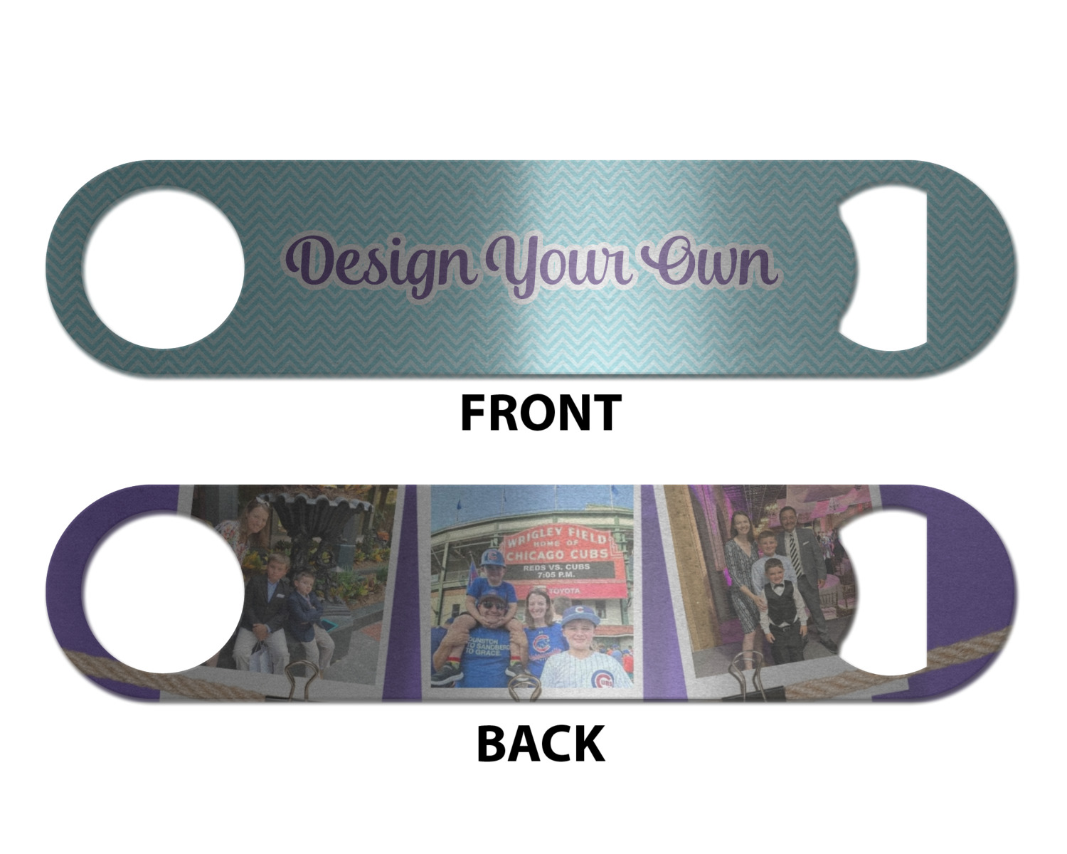 Stop struggling with the caps or your bottled beverages by purchasing one of our personalized bottle openers! These wrench-like custom bar blades are built to last. Customize one for your home's bar, or as a practical gift for a loved one!
