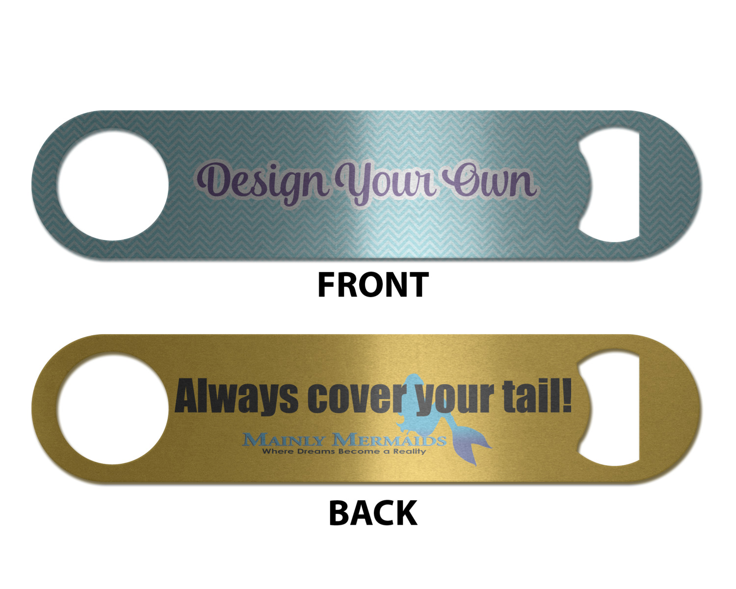 Stop struggling with the caps or your bottled beverages by purchasing one of our personalized bottle openers! These wrench-like custom bar blades are built to last. Customize one for your home's bar, or as a practical gift for a loved one!